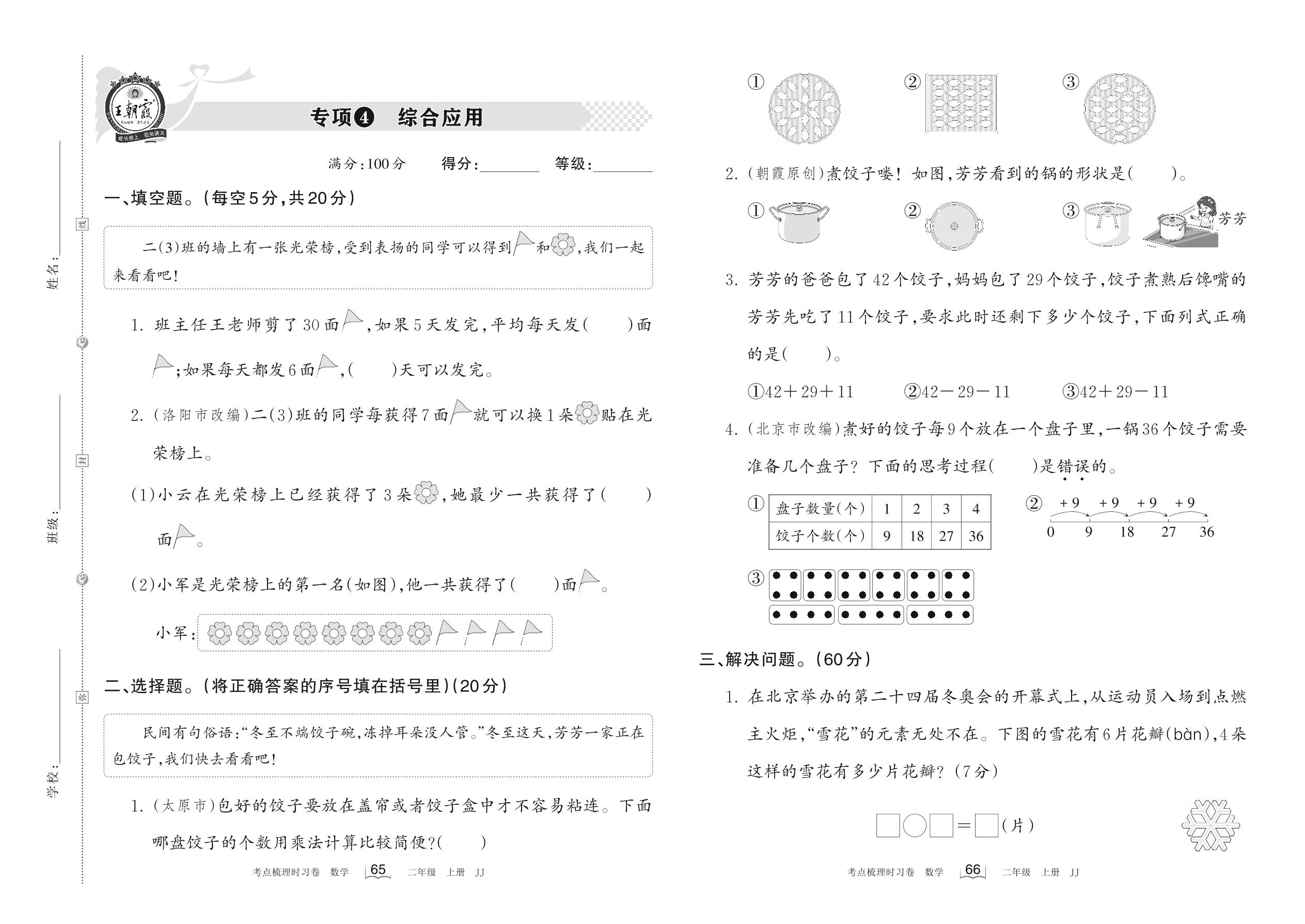 2022上册二年级数学冀教版 专项4 综合应用