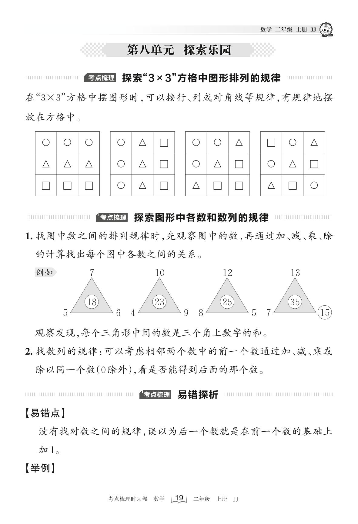 2022上册二年级数学冀教版 考点梳理手册——第八单元 探索乐园