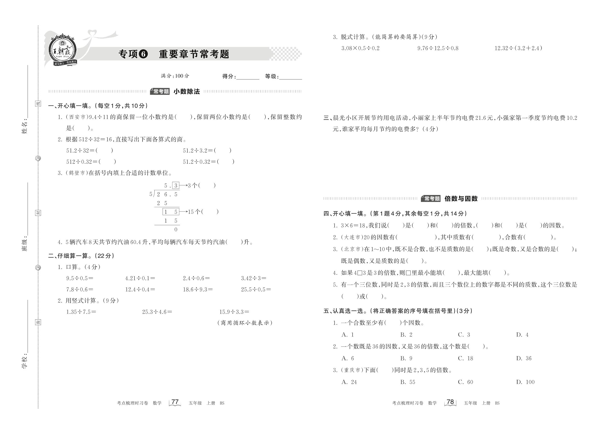 2022上册五年级数学北师版 专项6 重要章节常考题