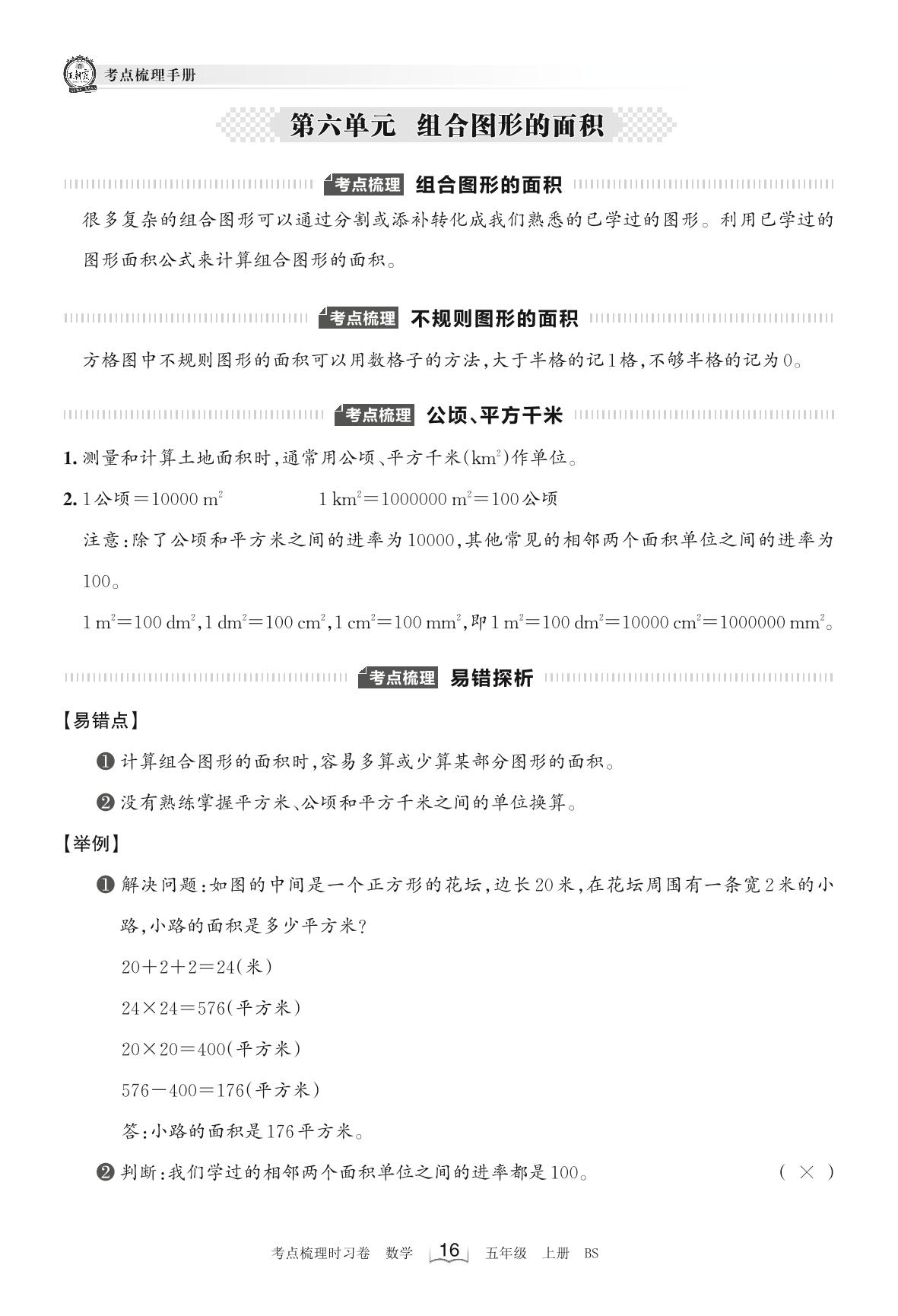 2022上册五年级数学北师版 考点梳理手册——第六单元 组合图形的面积
