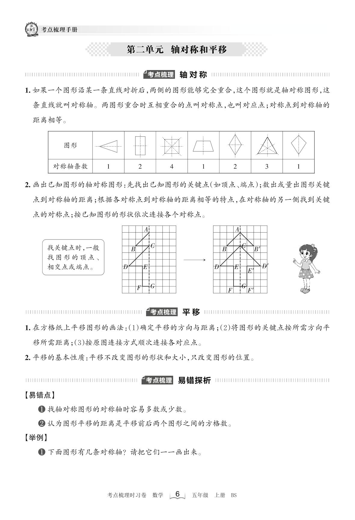 2022上册五年级数学北师版 考点梳理手册——第二单元 轴对称和平移