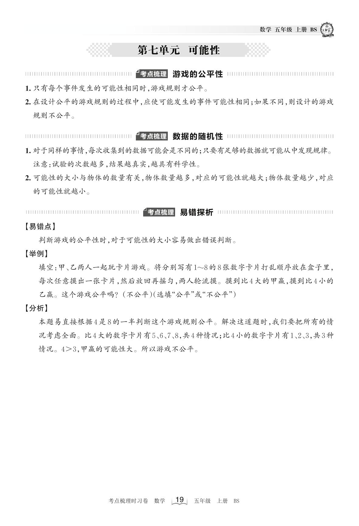 2022上册五年级数学北师版 考点梳理手册——第七单元 可能性