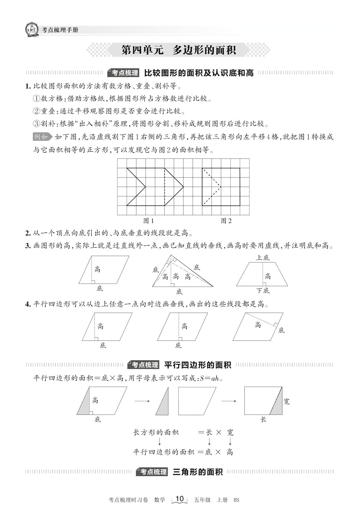 2022上册五年级数学北师版 考点梳理手册——第四单元 多边形的面积