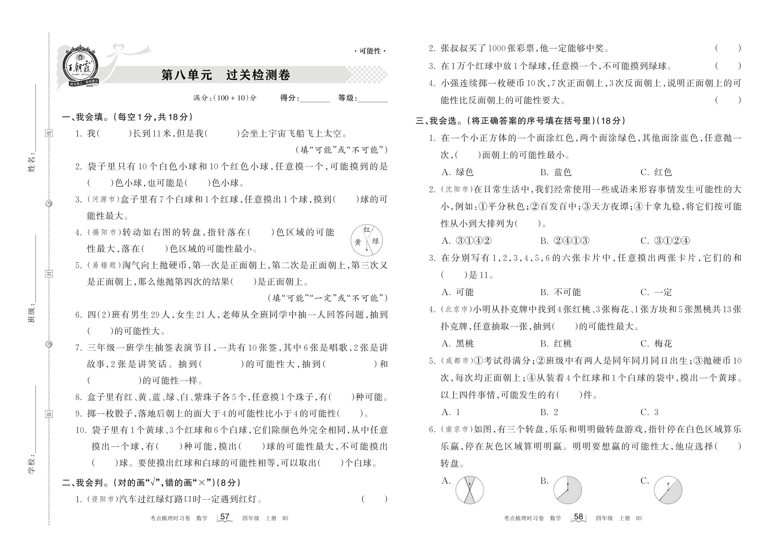 2022上册四年级数学北师版 第八单元 过关检测卷