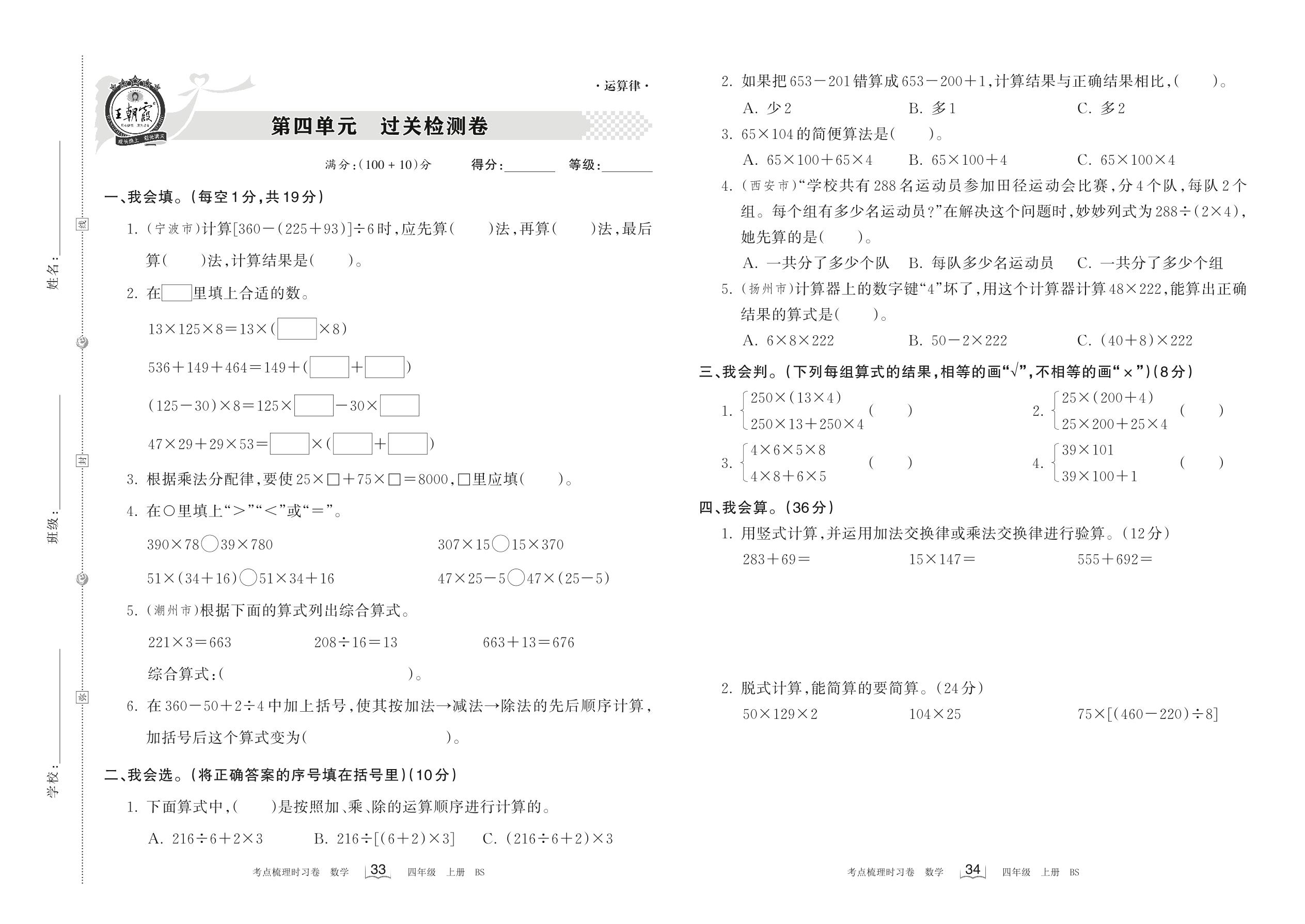 四年级数学北师版上册单元卷