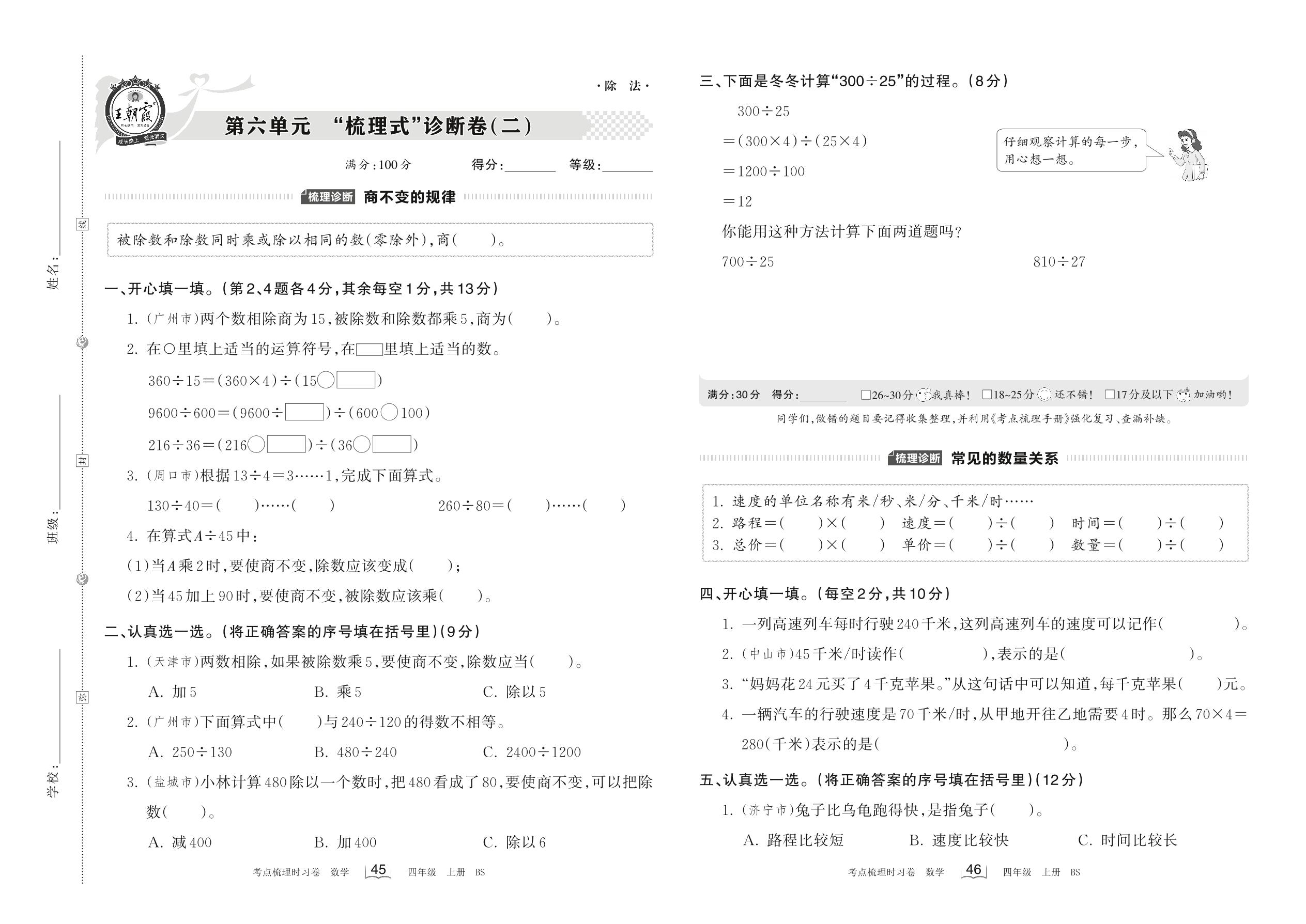 2022上册四年级数学北师版 第六单元 “梳理式”诊断卷(二)