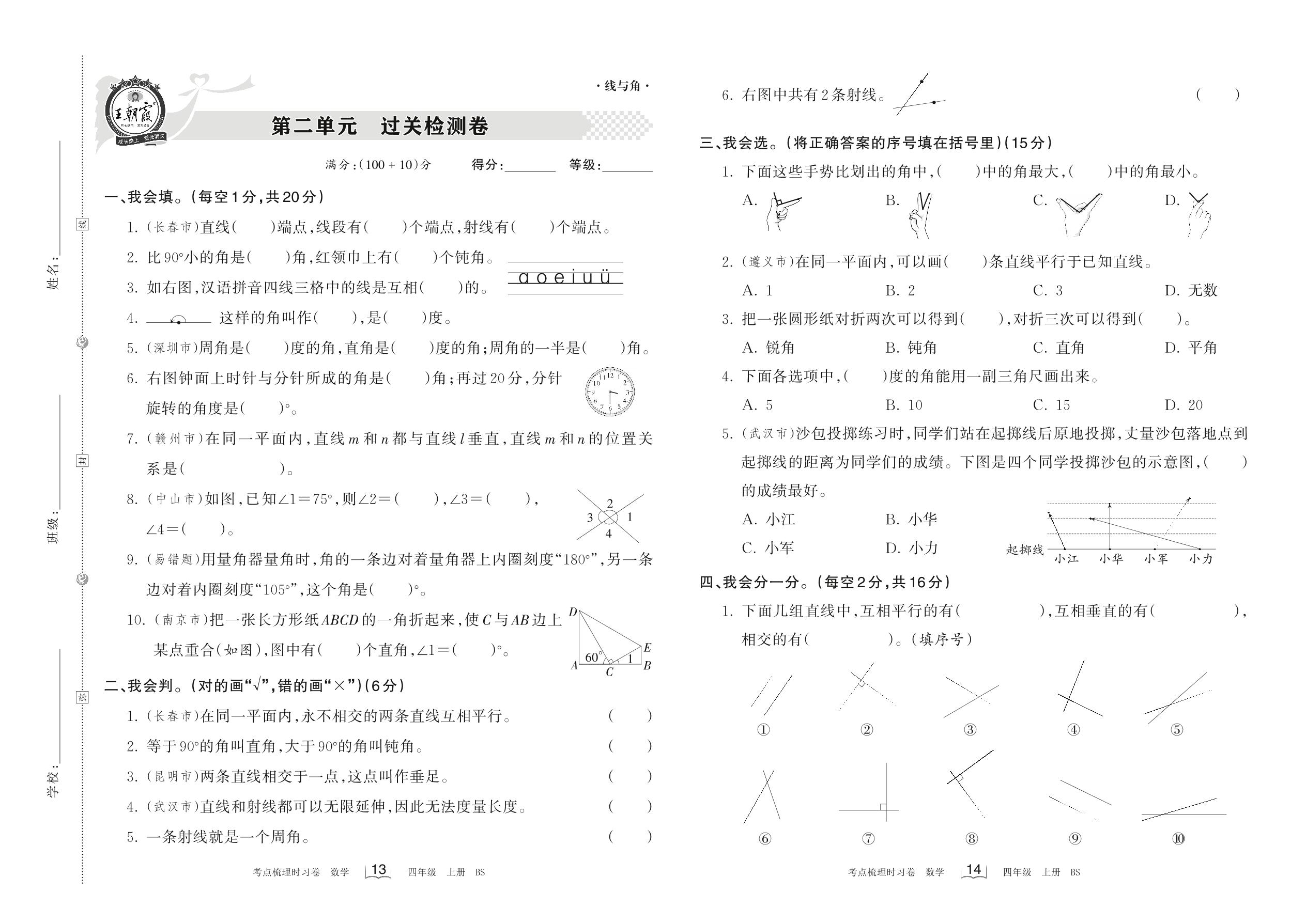 2022上册四年级数学北师版 第二单元 过关检测卷