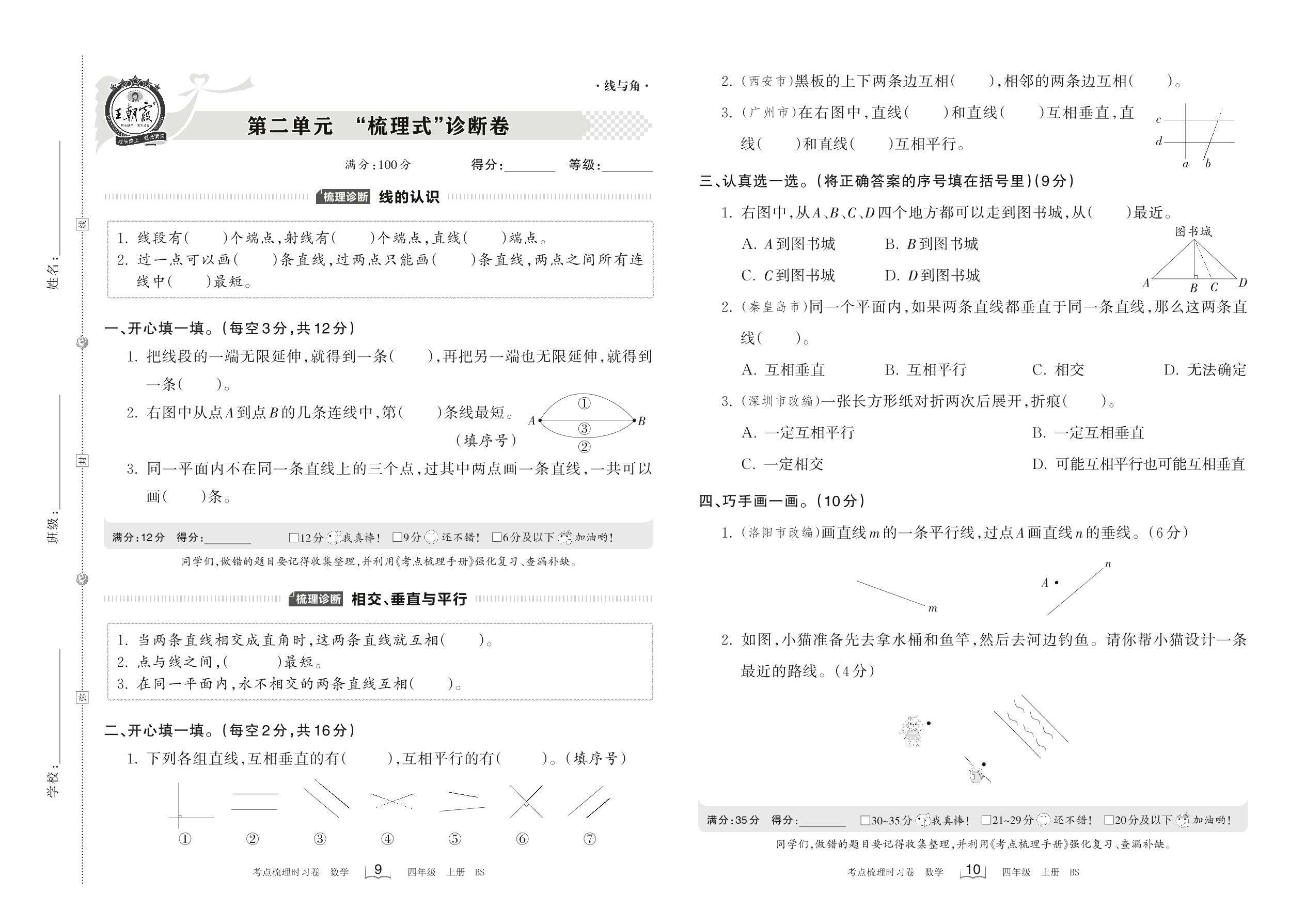 2022上册四年级数学北师版 第二单元 “梳理式”诊断卷