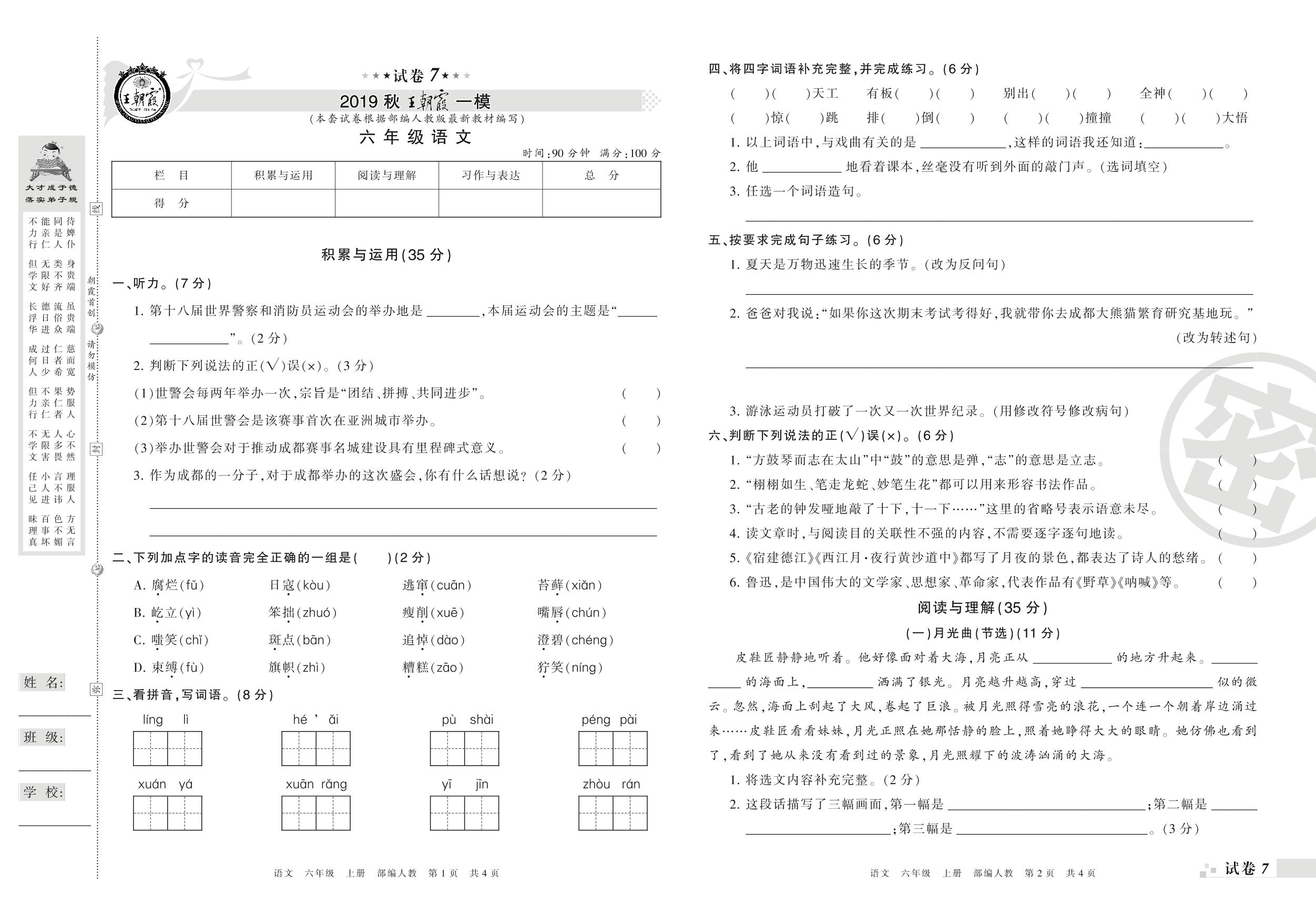 王朝霞期末模拟卷六年级上册语文(人教版)_R21080242112【7】