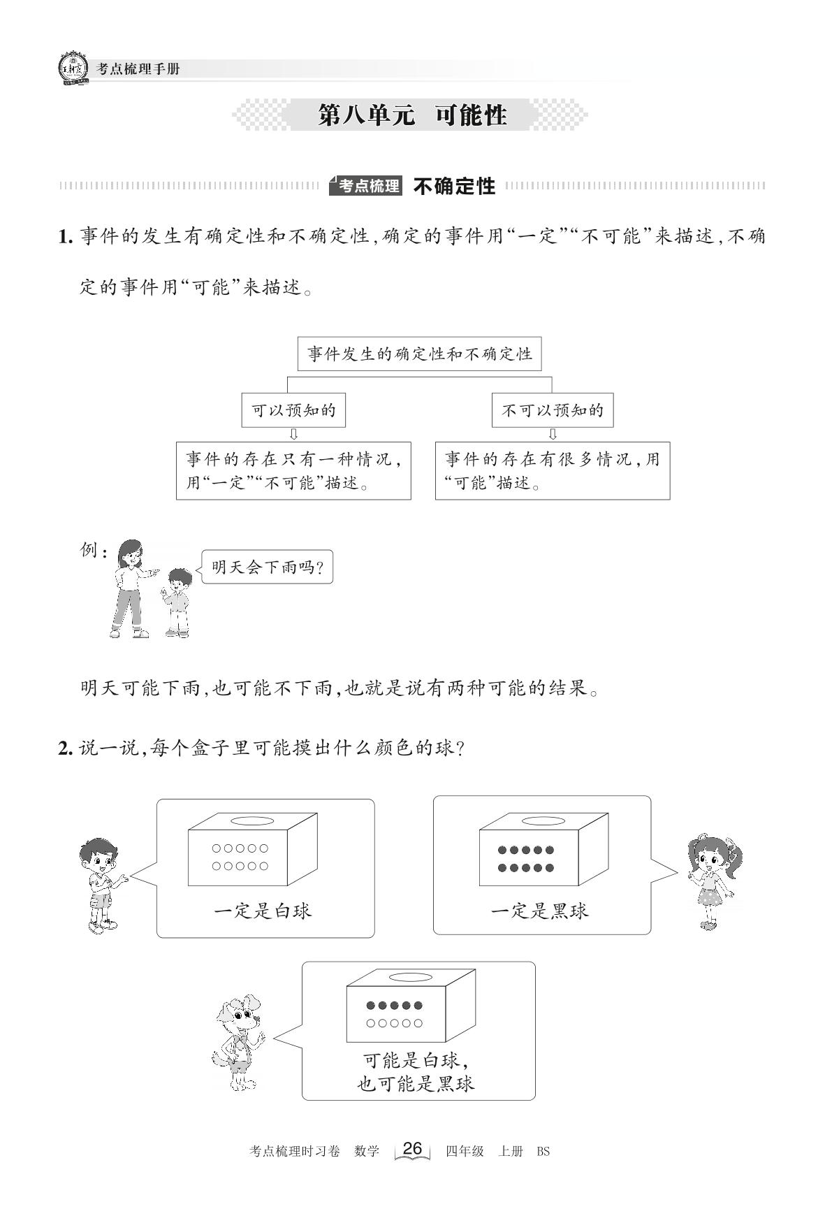 2022上册四年级数学北师版 考点梳理手册——第八单元 可能性