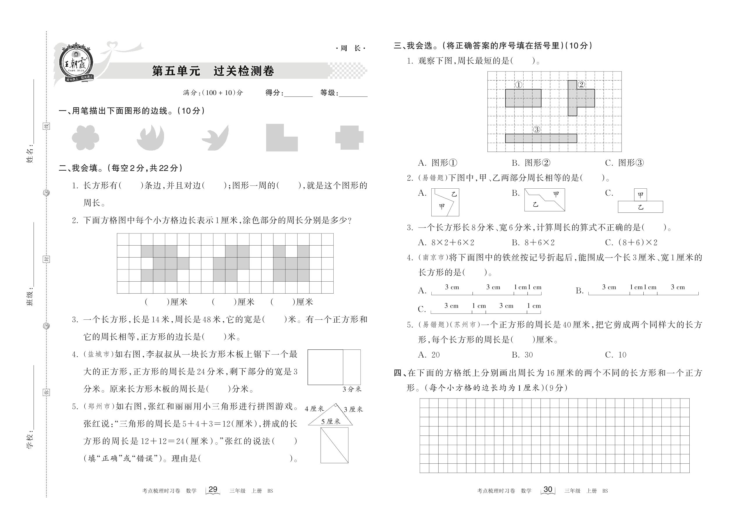 2022上册三年级数学北师版 第五单元 过关检测卷