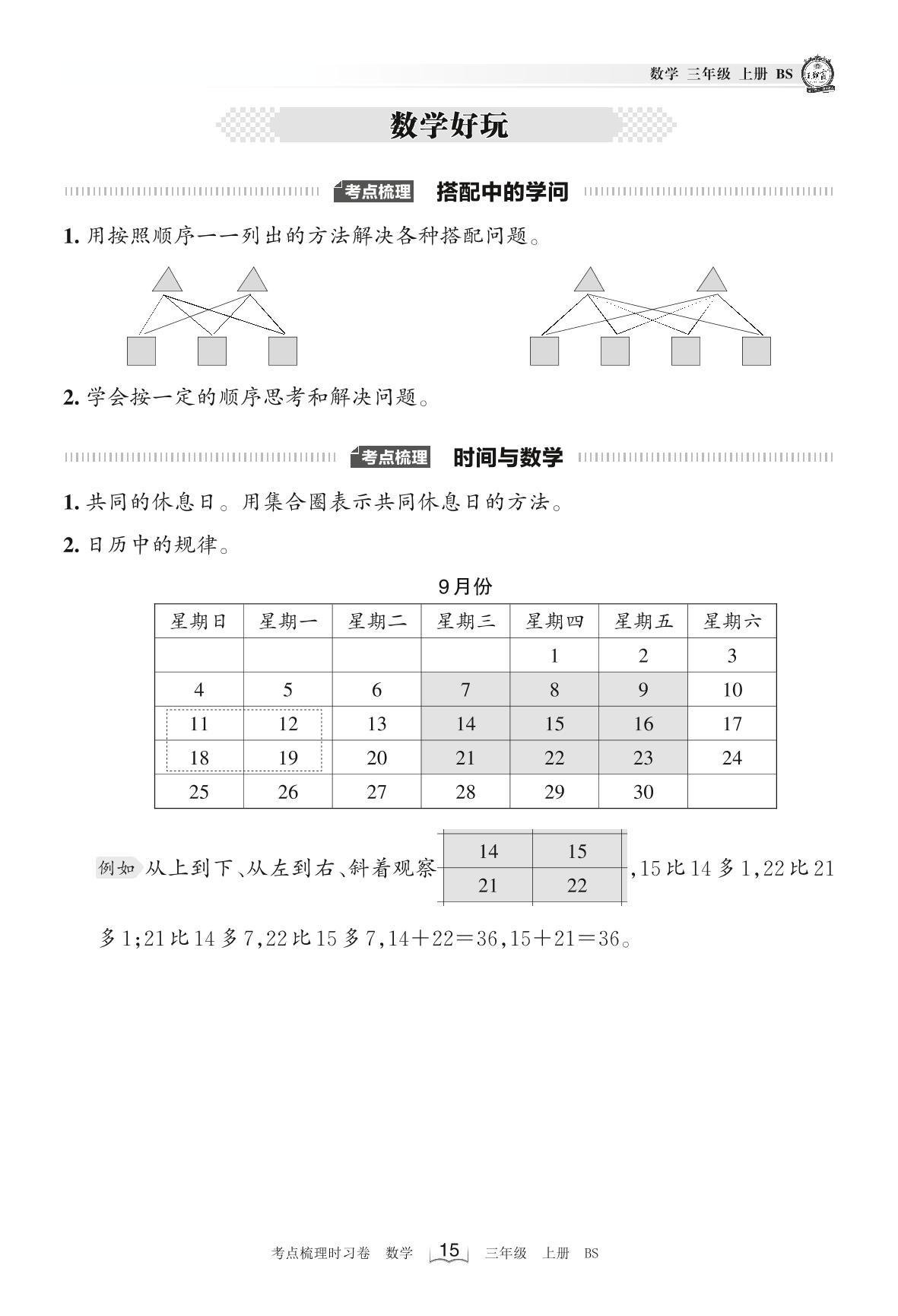 2022上册三年级数学北师版 考点梳理手册——数学好玩