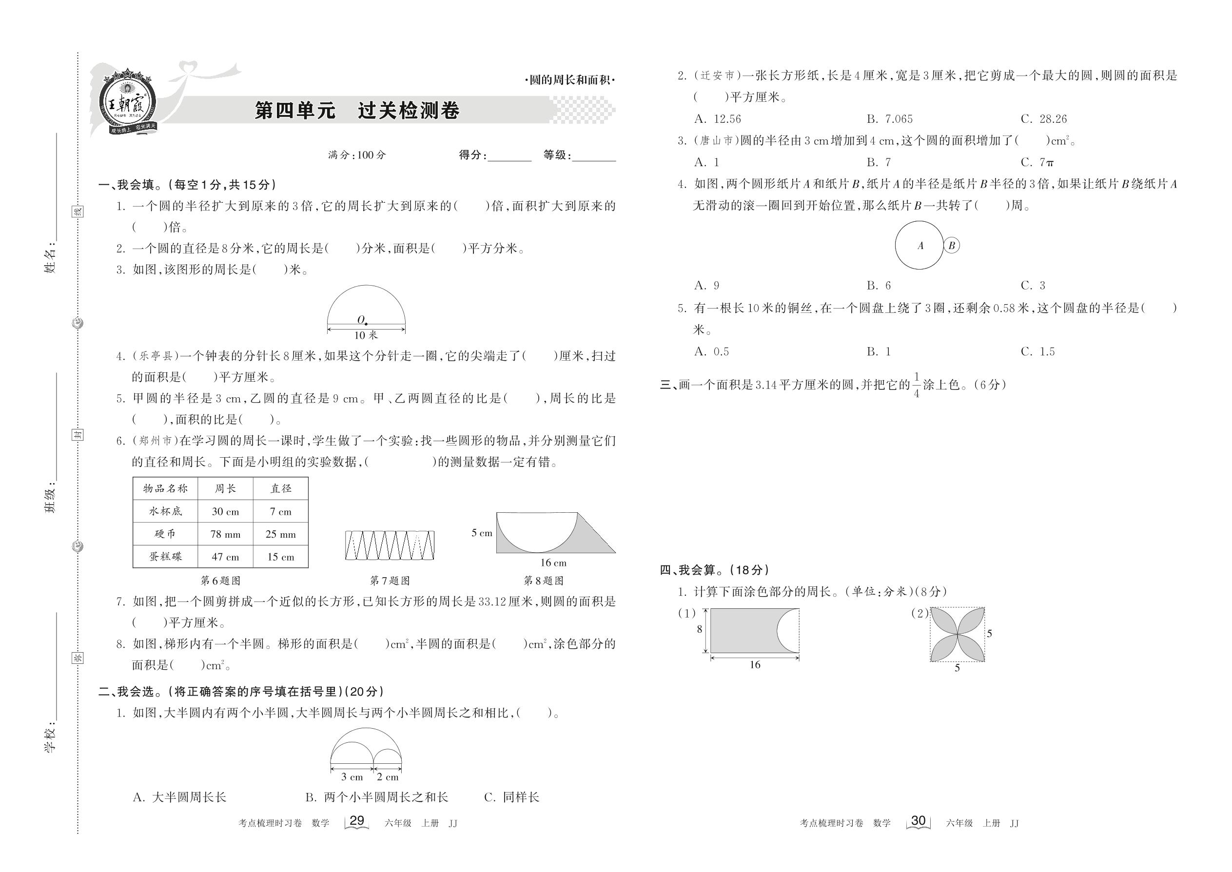 六年级数学冀教版上册单元卷
