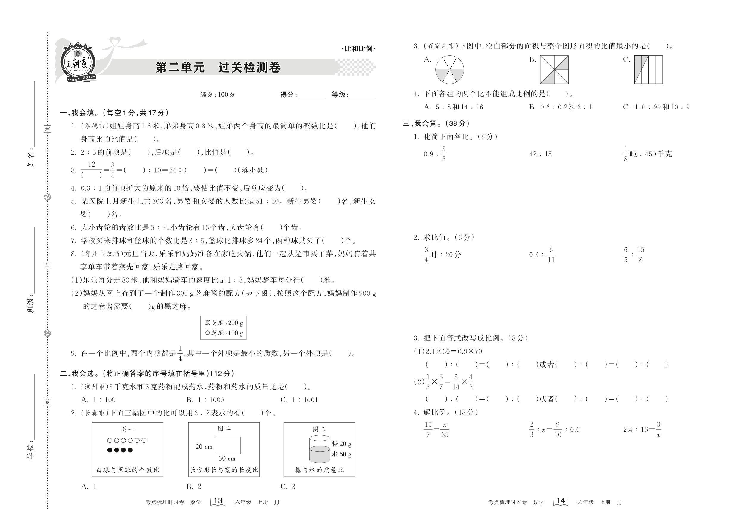 2022上册六年级数学冀教版 第二单元 过关检测卷