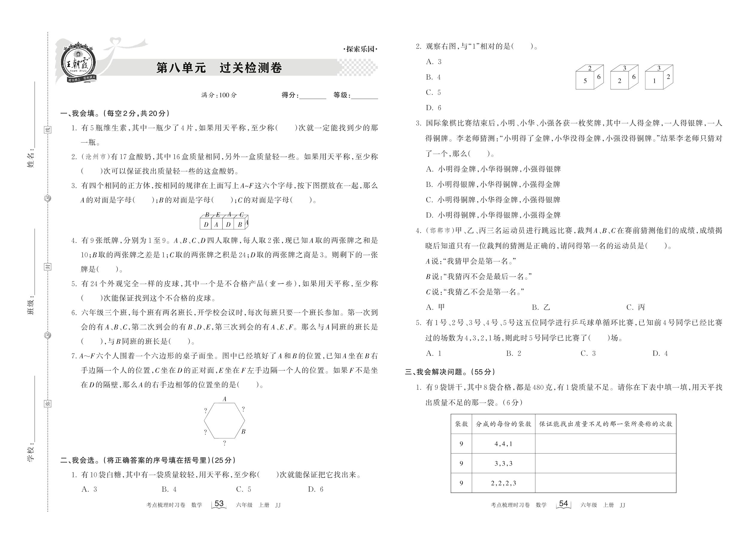 2022上册六年级数学冀教版 第八单元 过关检测卷