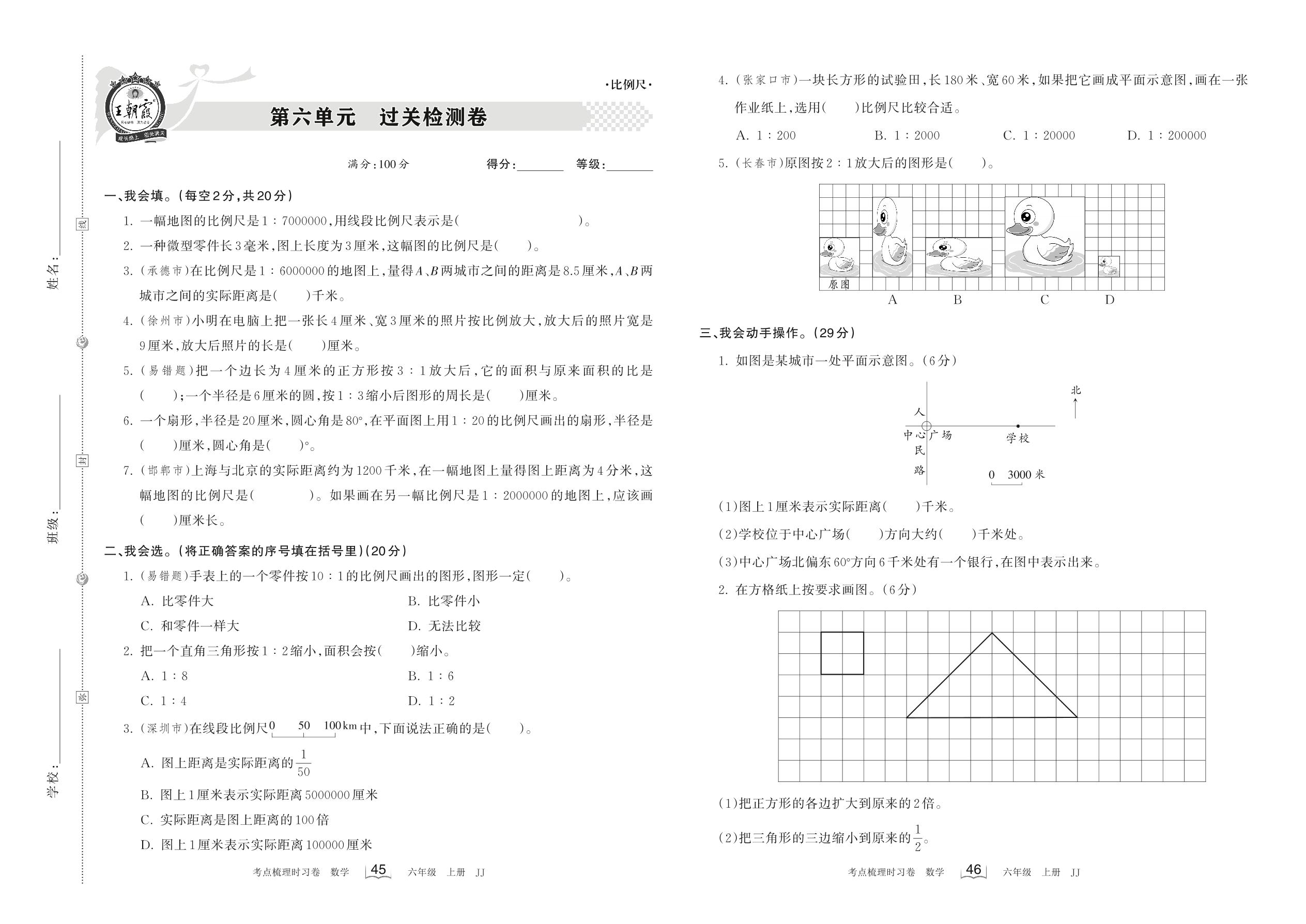2022上册六年级数学冀教版 第六单元 过关检测卷