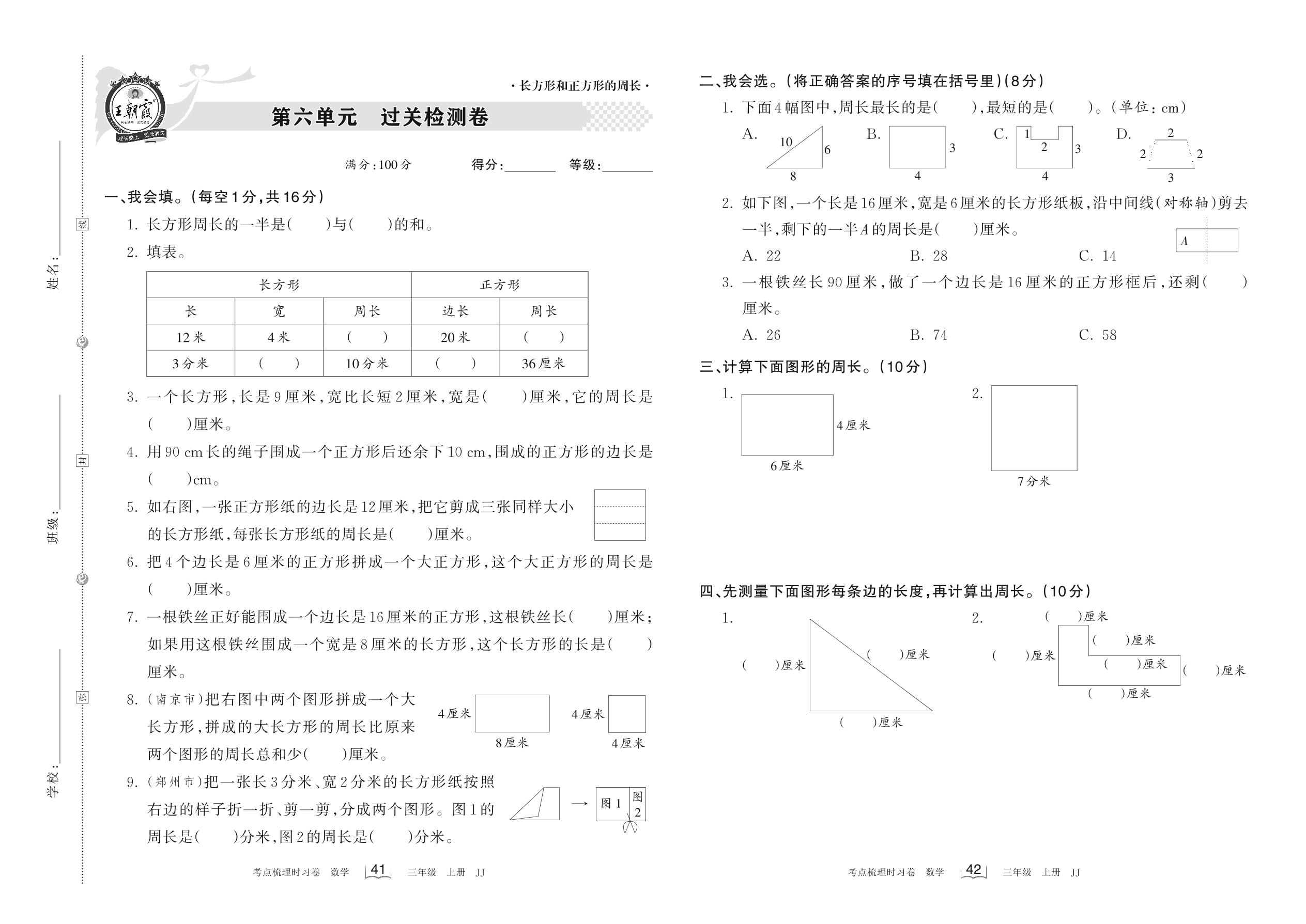 三年级数学冀教版上册单元卷