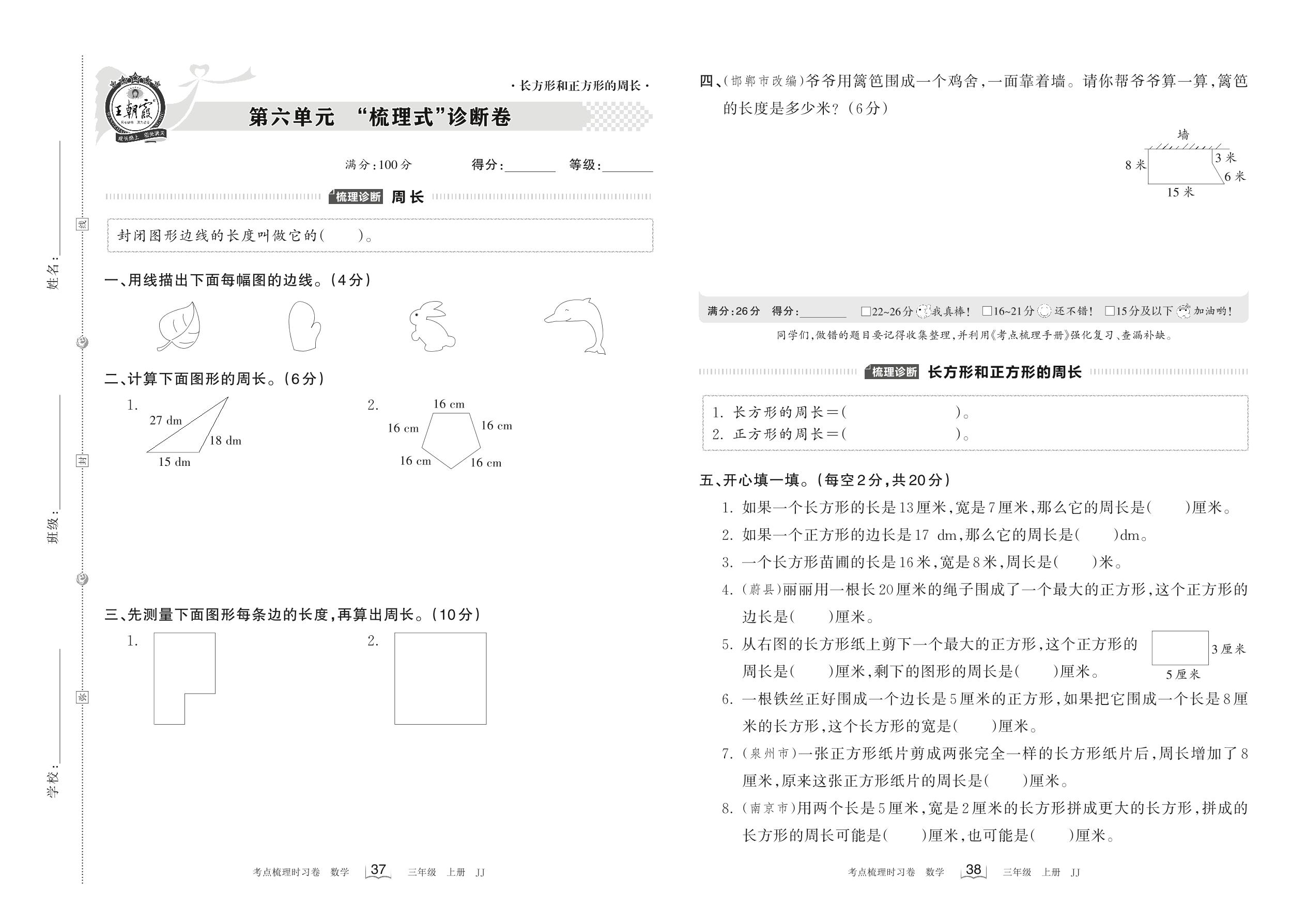 2022上册三年级数学冀教版 第六单元 “梳理式”诊断卷