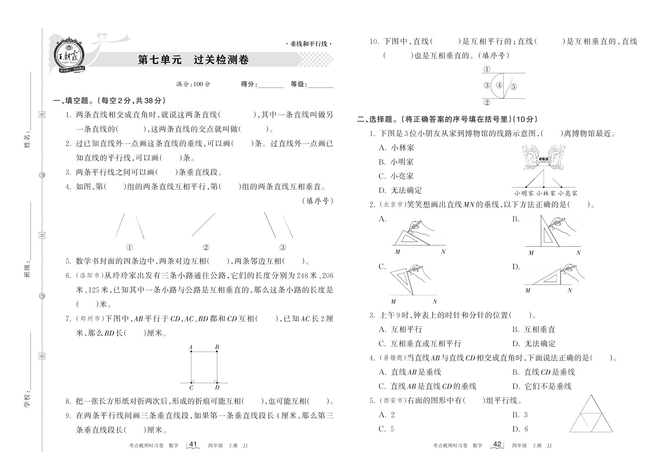 2022上册四年级数学冀教版 第七单元 过关检测卷