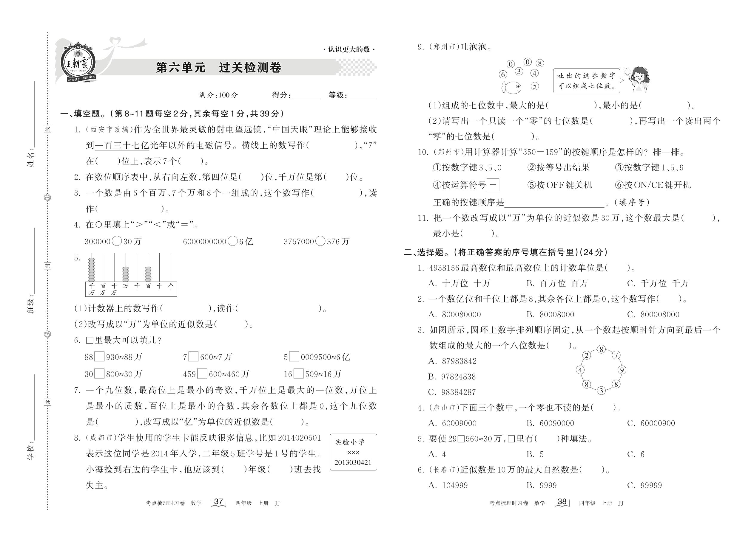 2022上册四年级数学冀教版 第六单元 过关检测卷