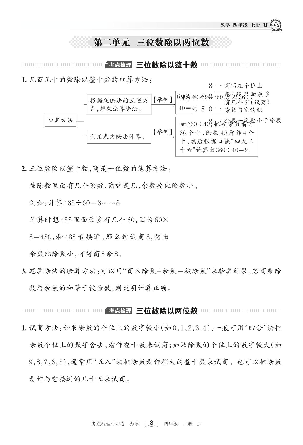 2022上册四年级数学冀教版 考点梳理手册——第二单元 三位数除以两位数
