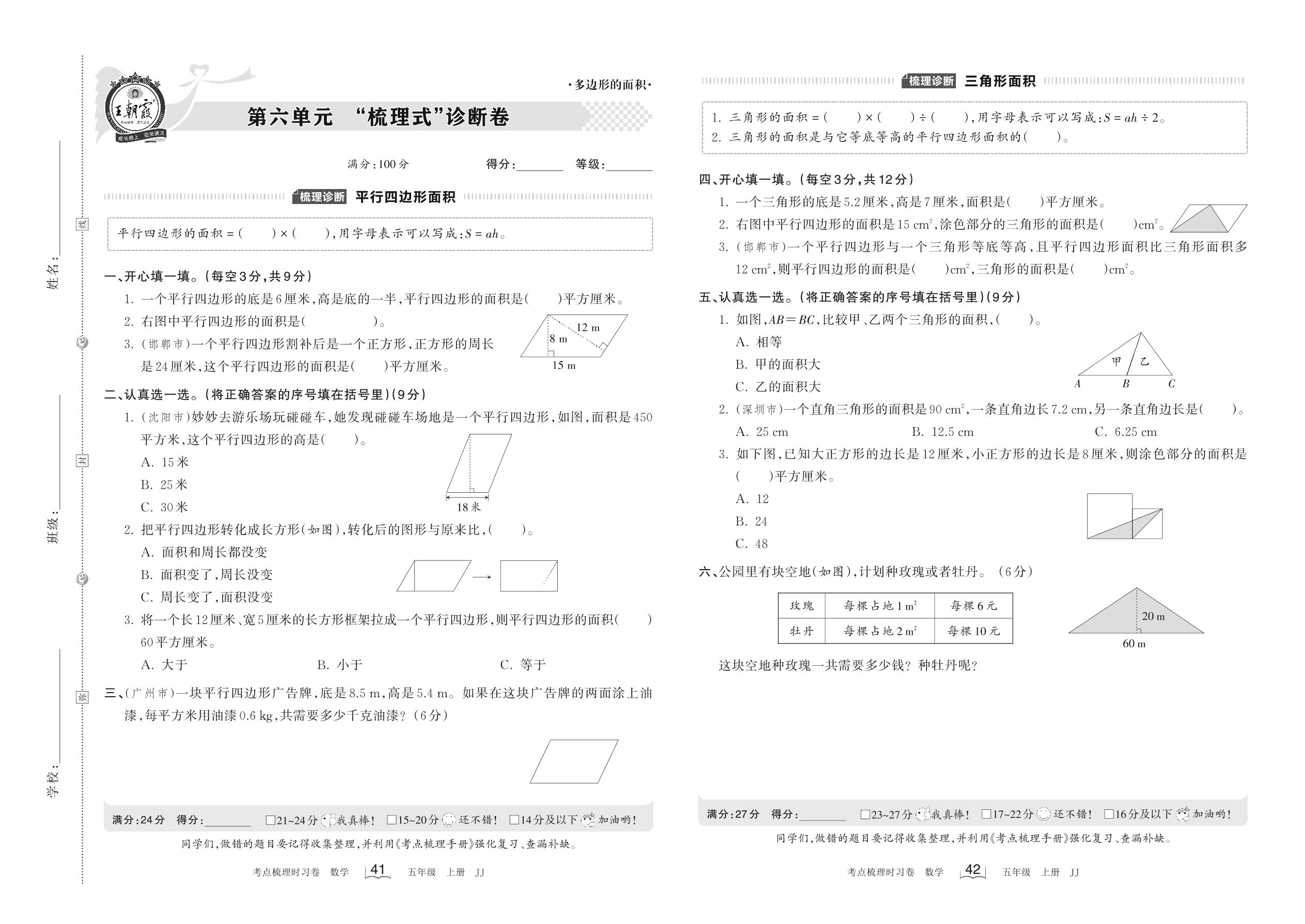 2022上册五年级数学冀教版 第六单元 “梳理式”诊断卷