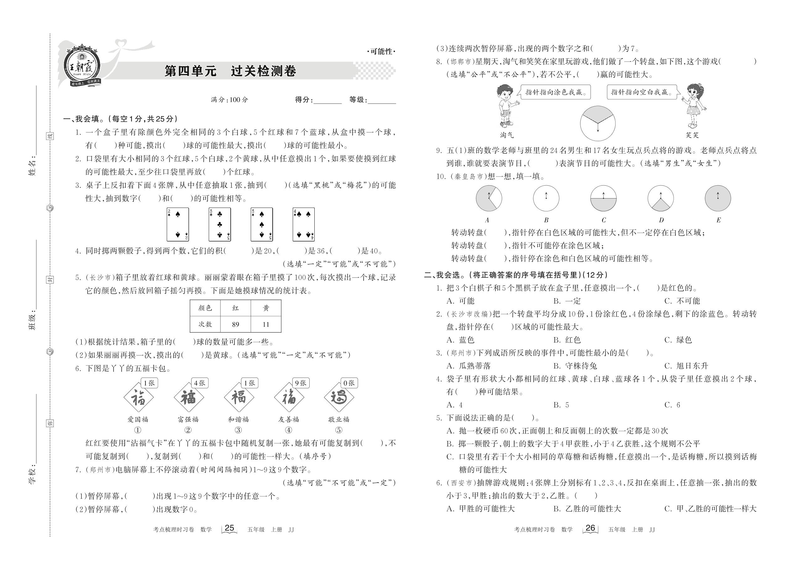 2022上册五年级数学冀教版 第四单元 过关检测卷