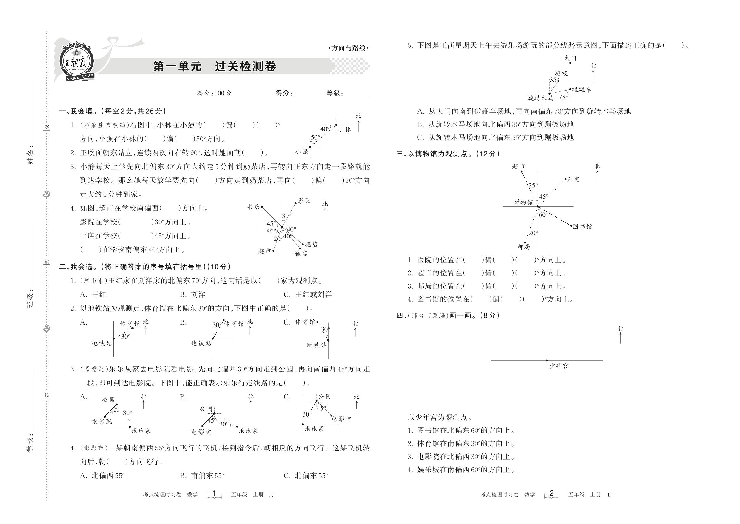 2022上册五年级数学冀教版 第一单元 过关检测卷