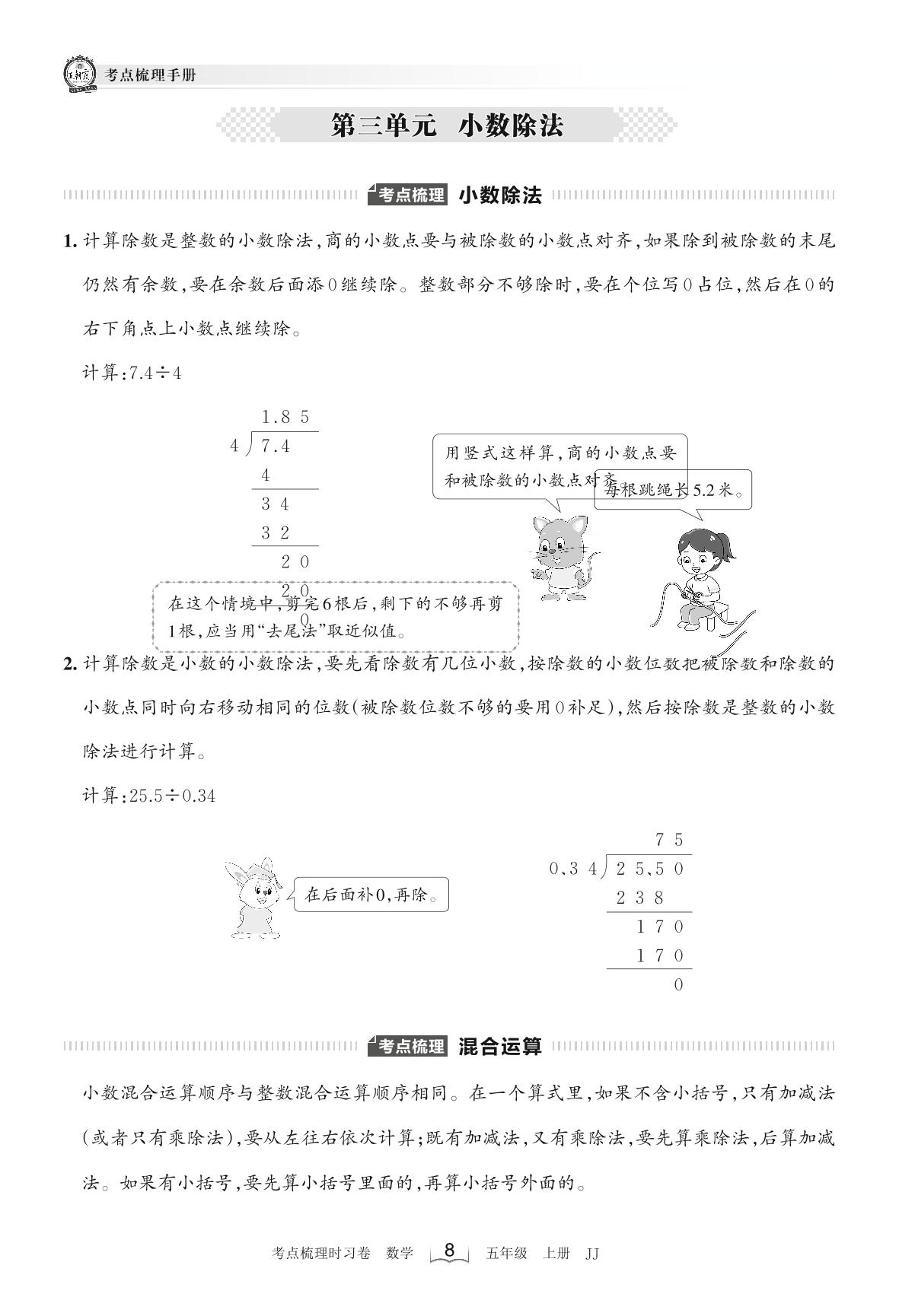 2022上册五年级数学冀教版 考点梳理手册——第三单元 小数除法
