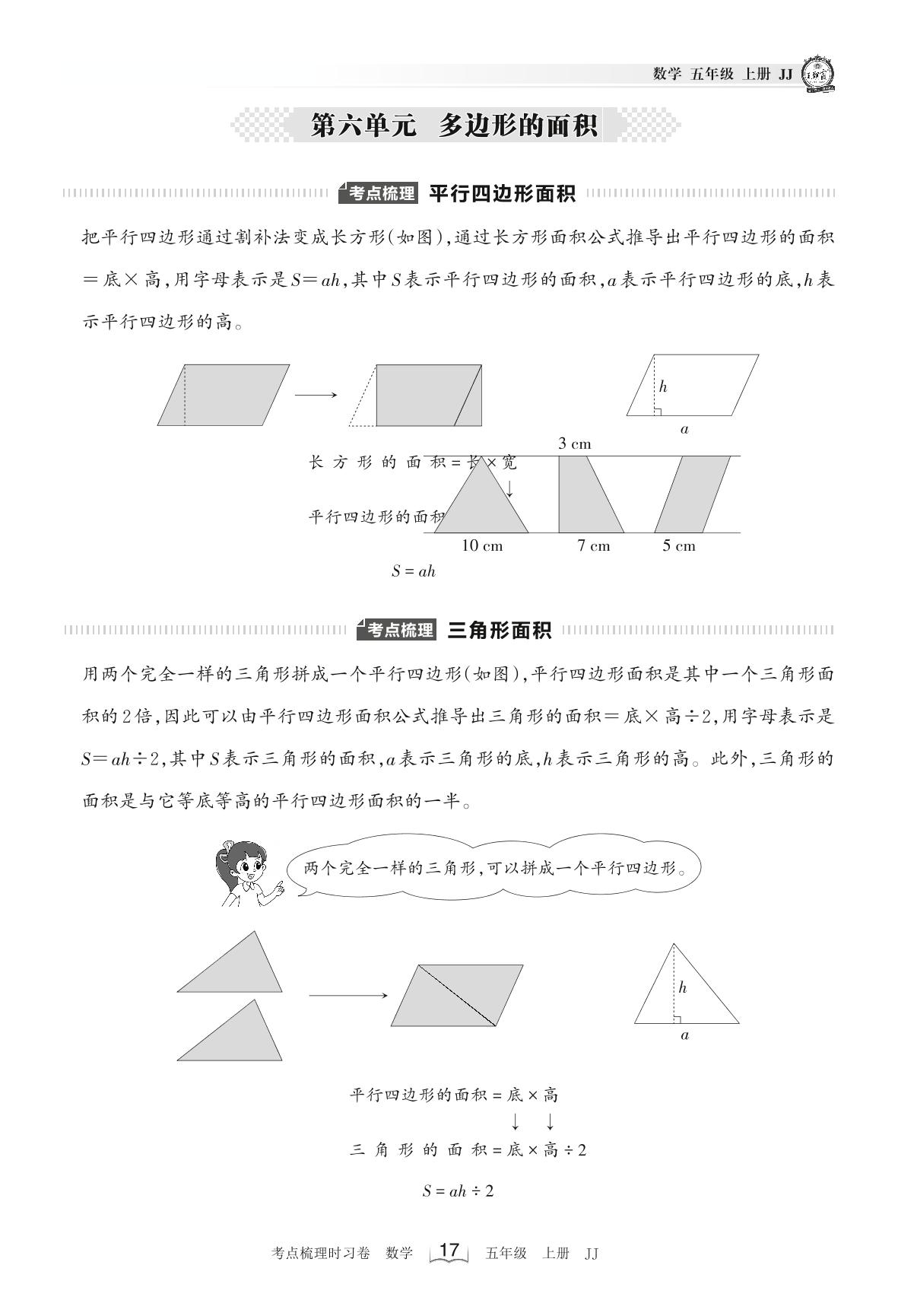 2022上册五年级数学冀教版 考点梳理手册——第六单元 多边形的面积