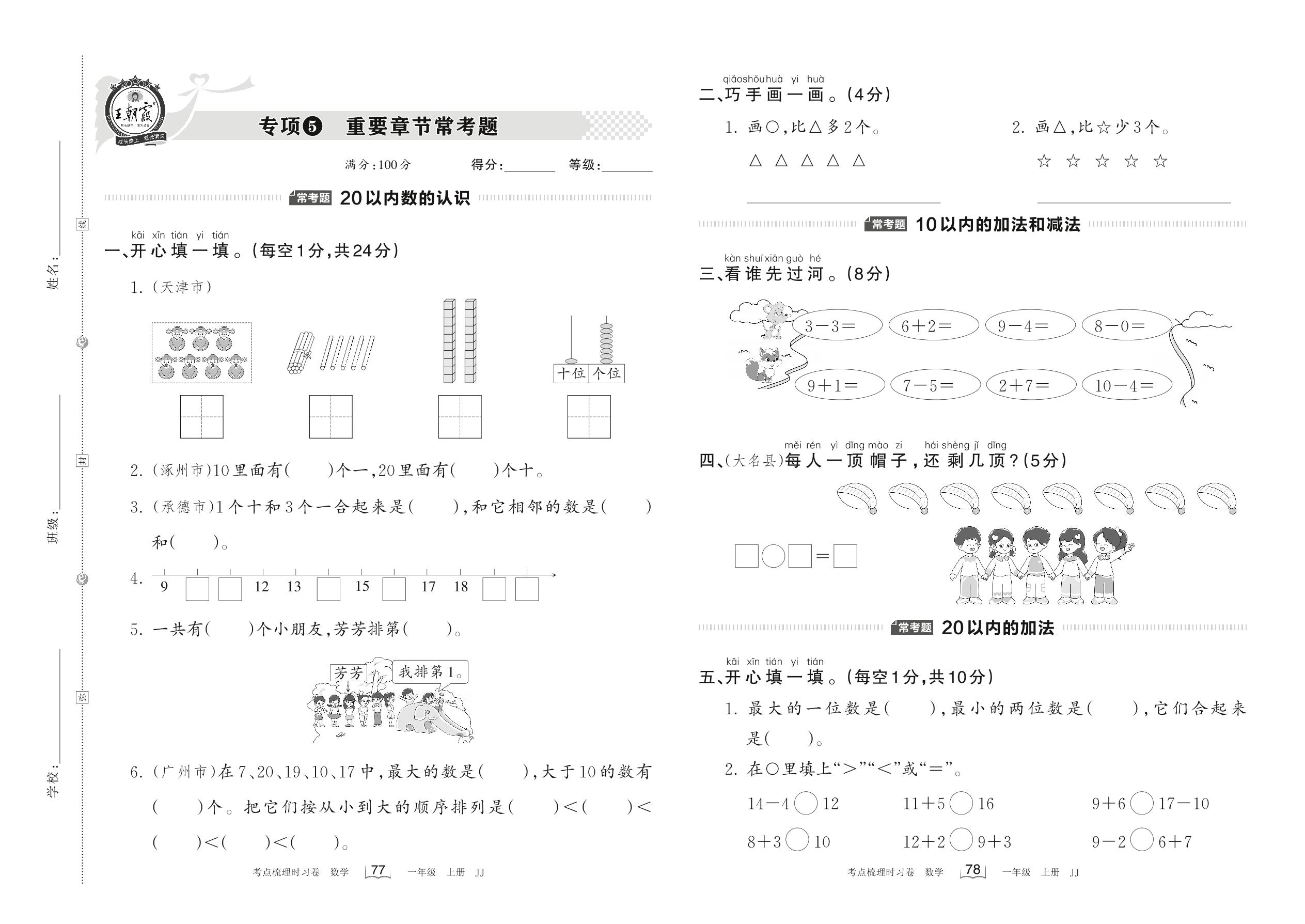 2022上册一年级数学冀教版 专项5 重要章节常考题