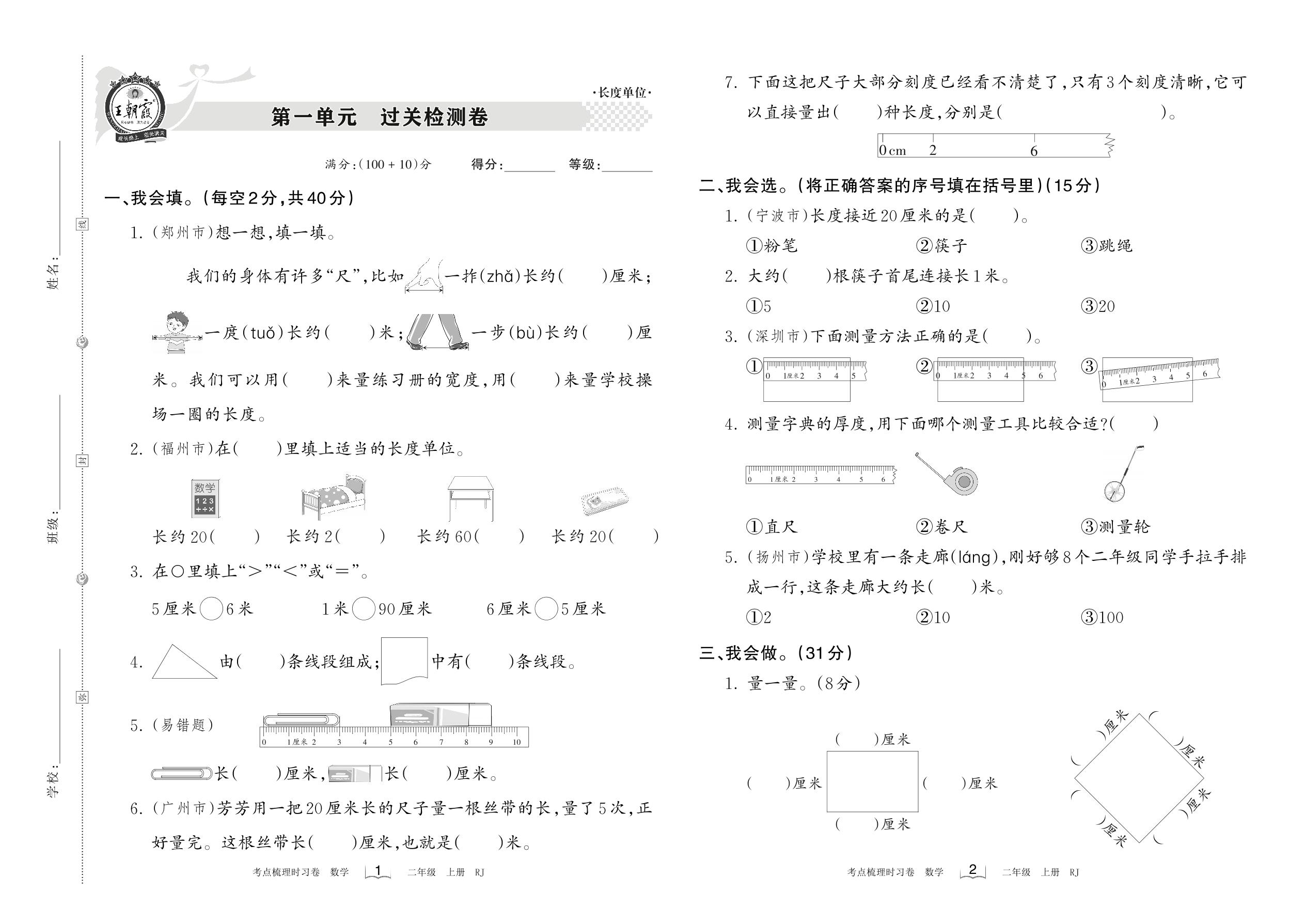 二年级数学人教版上册单元卷