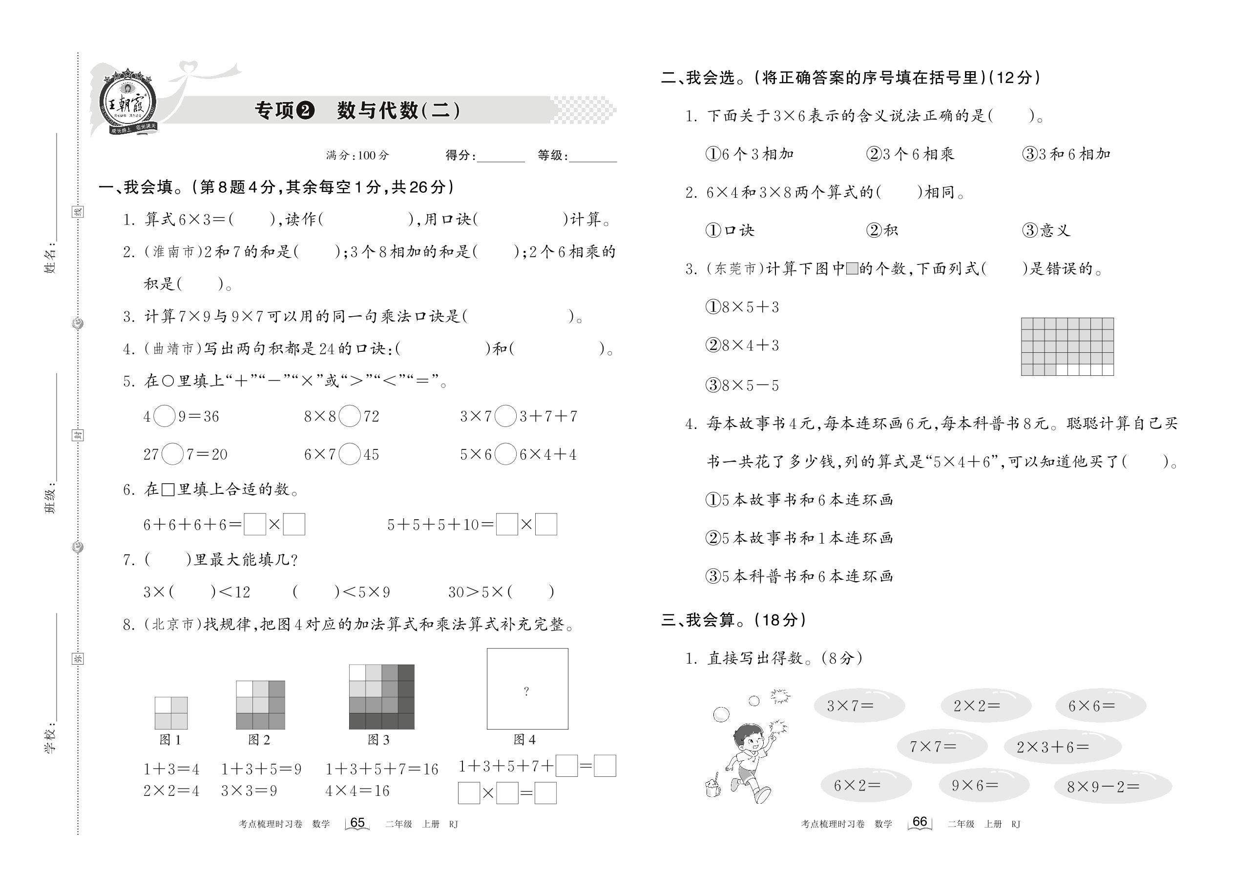 2022上册二年级数学人教版 专项2 数与代数(二)