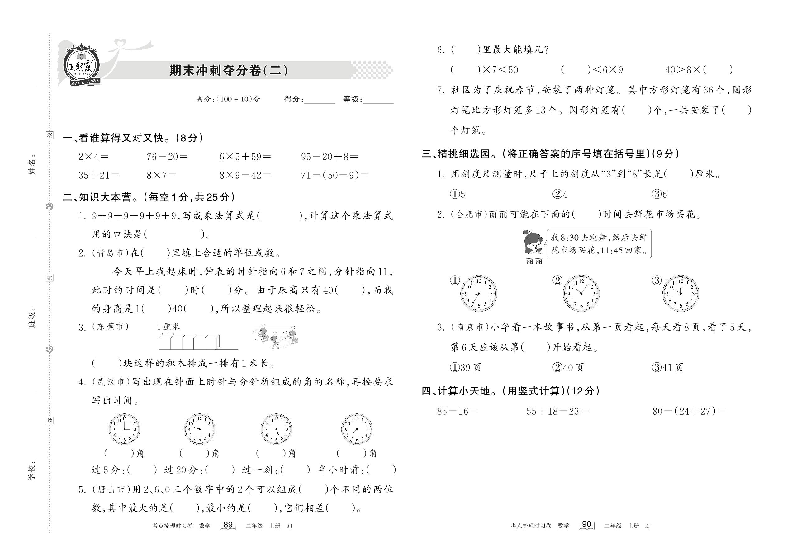 2022上册二年级数学人教版 期末冲刺夺分卷(二)