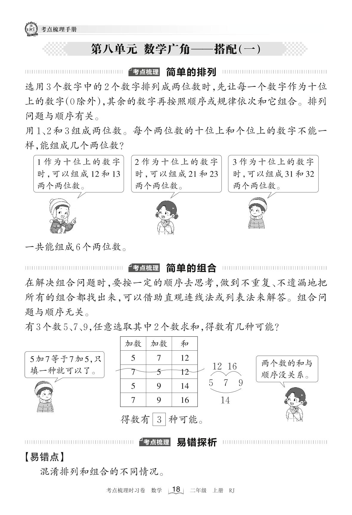 2022上册二年级数学人教版 考点梳理手册——第八单元 数学广角 搭配(一)