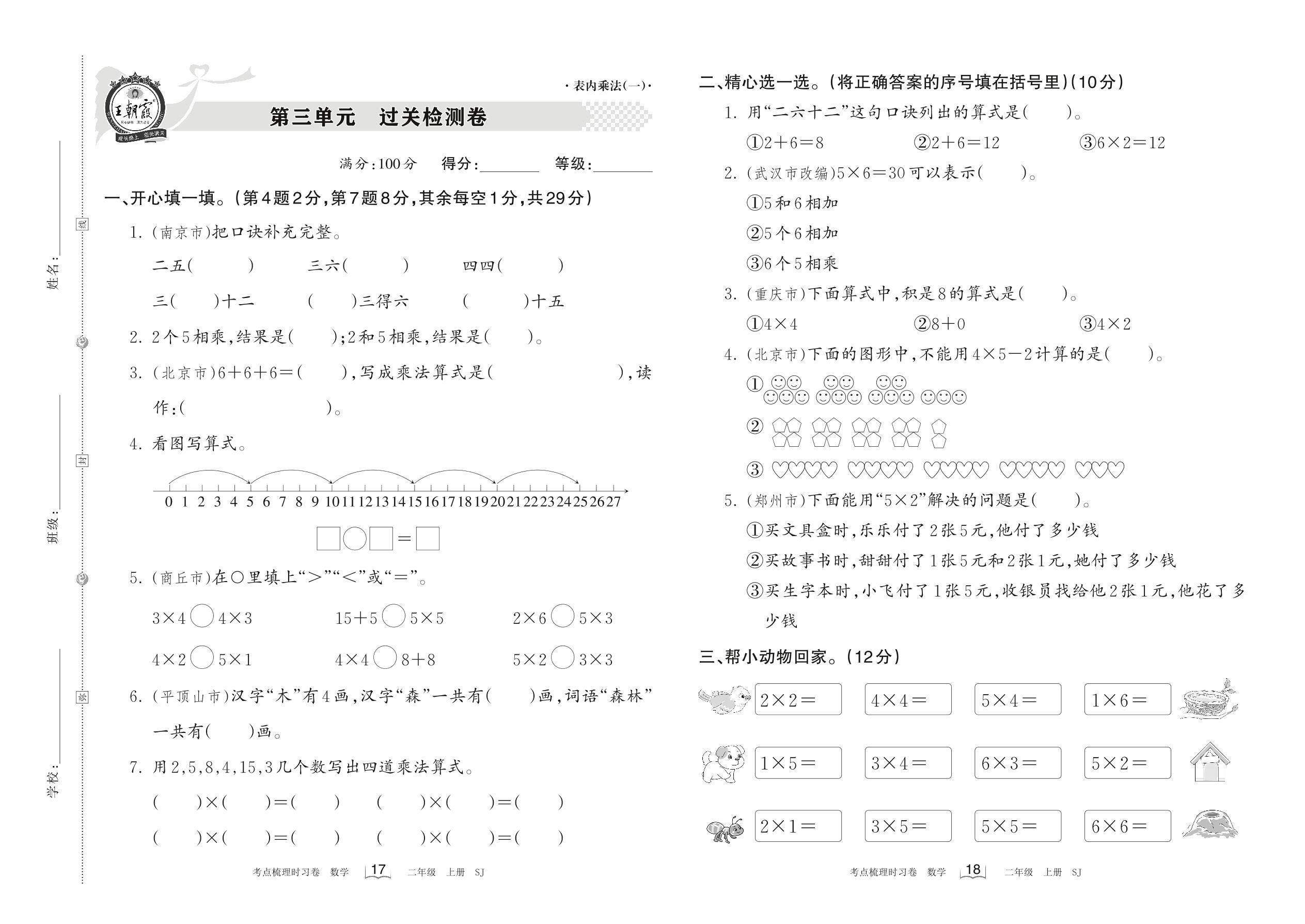 二年级数学苏教版上册单元卷