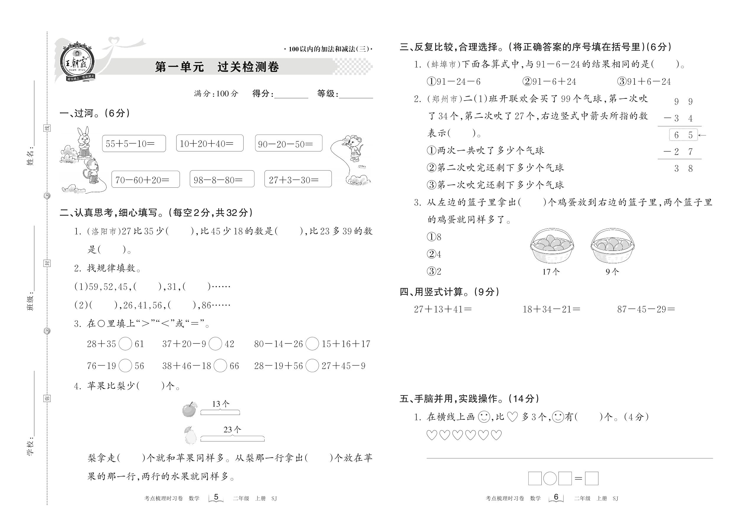 2022上册二年级数学苏教版 第一单元 过关检测卷