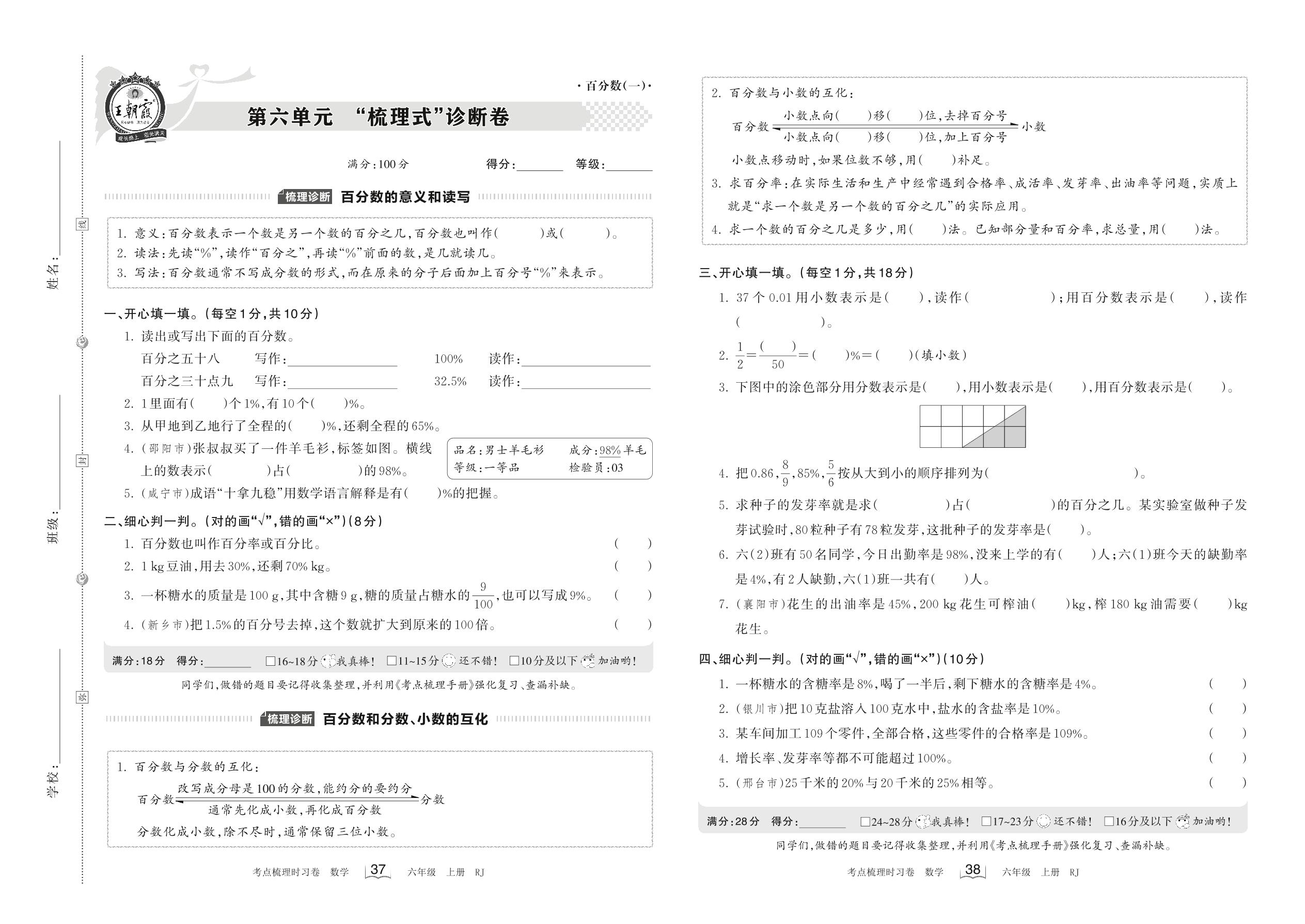 2022上册六年级数学人教版 第六单元 “梳理式”诊断卷