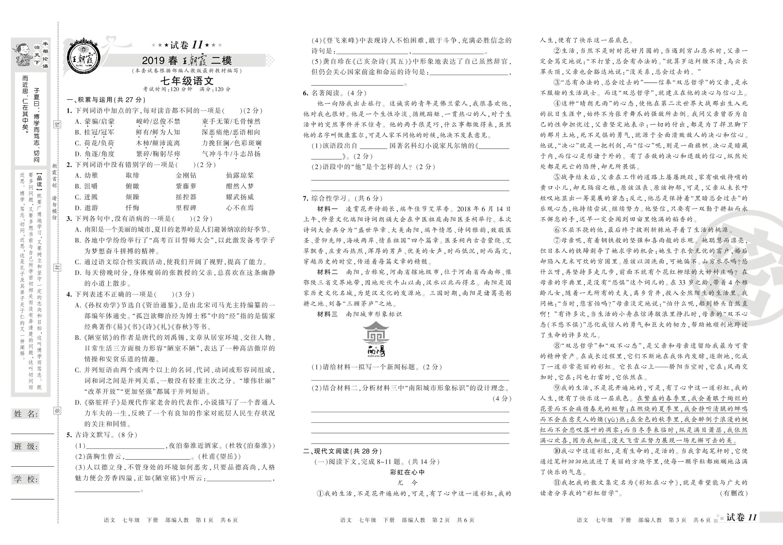 王朝霞期末模拟卷七年级下册语文(人教版)_R21080242444【11】