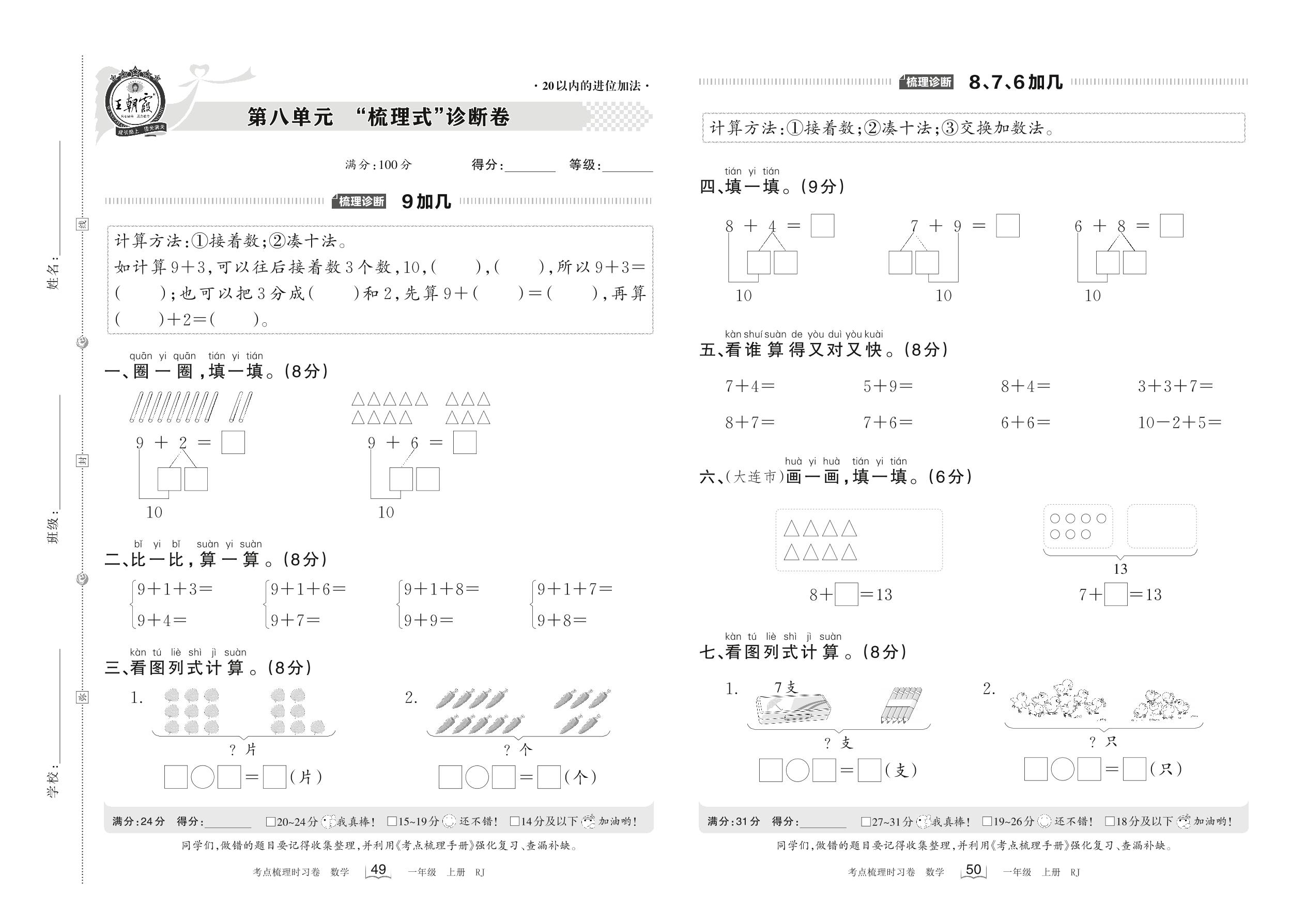 2022上册一年级数学人教版 第八单元 “梳理式”诊断卷