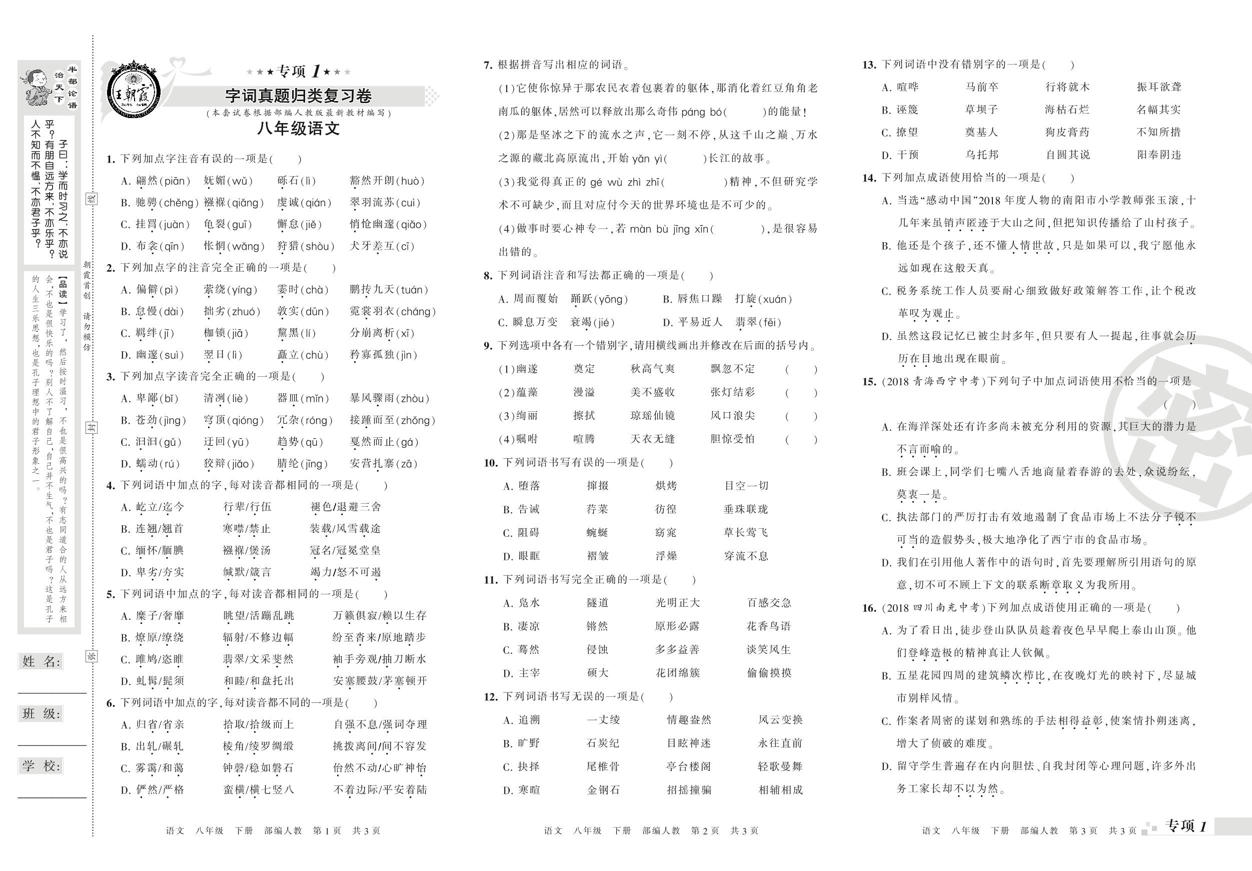 王朝霞期末专项卷——字词、句子真题归类复习卷八年级下册语文(人教版)_R21080242455【0】