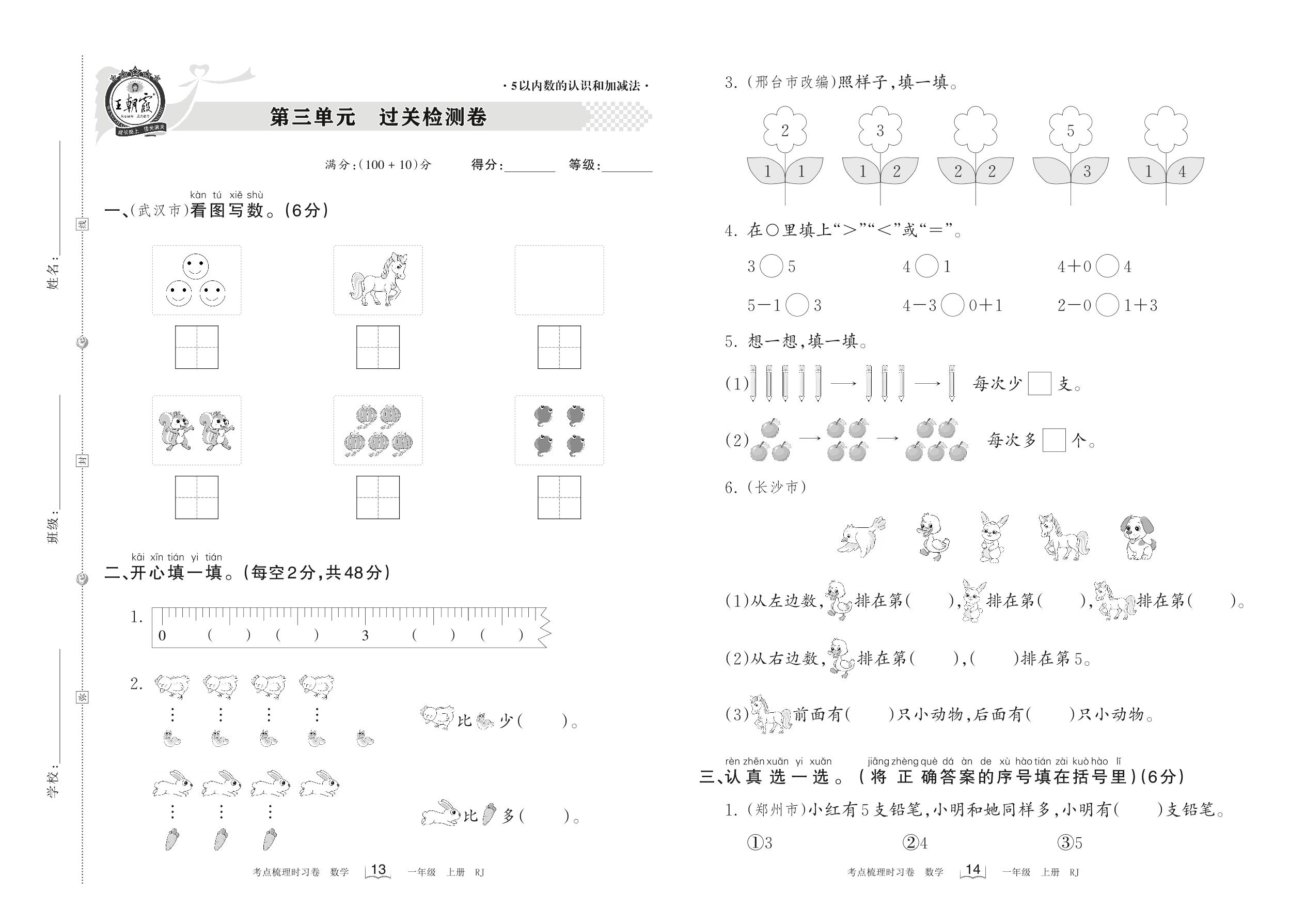 2022上册一年级数学人教版 第三单元 过关检测卷