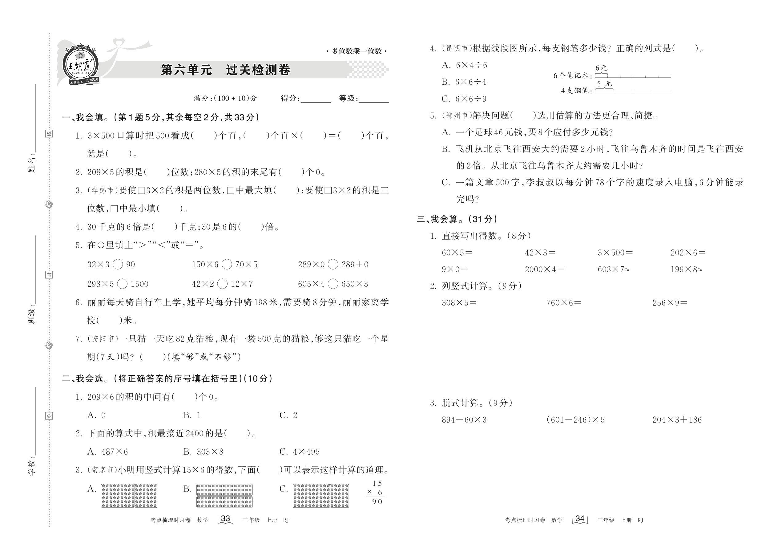 三年级数学人教版上册单元卷