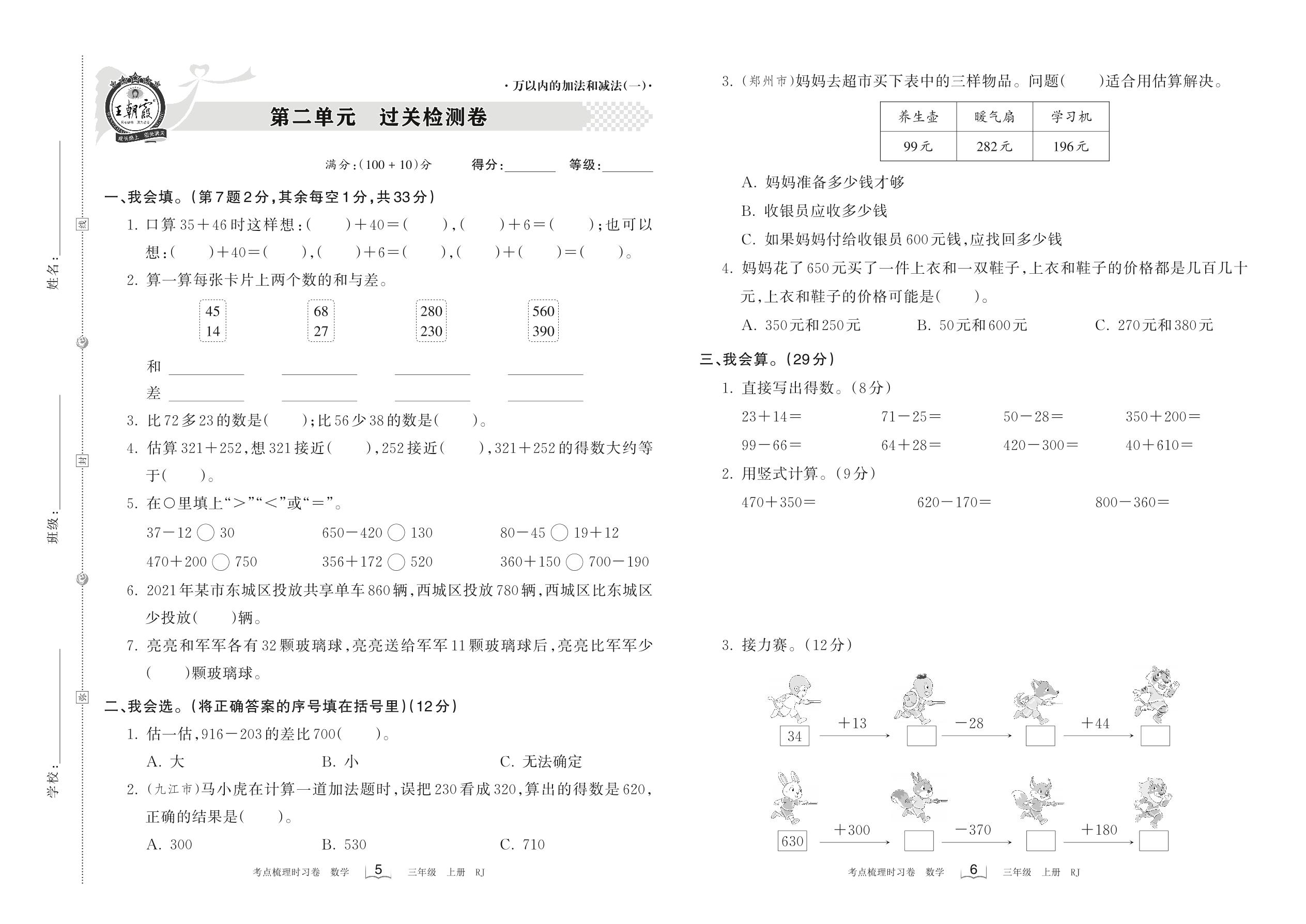 2022上册三年级数学人教版 第二单元 过关检测卷