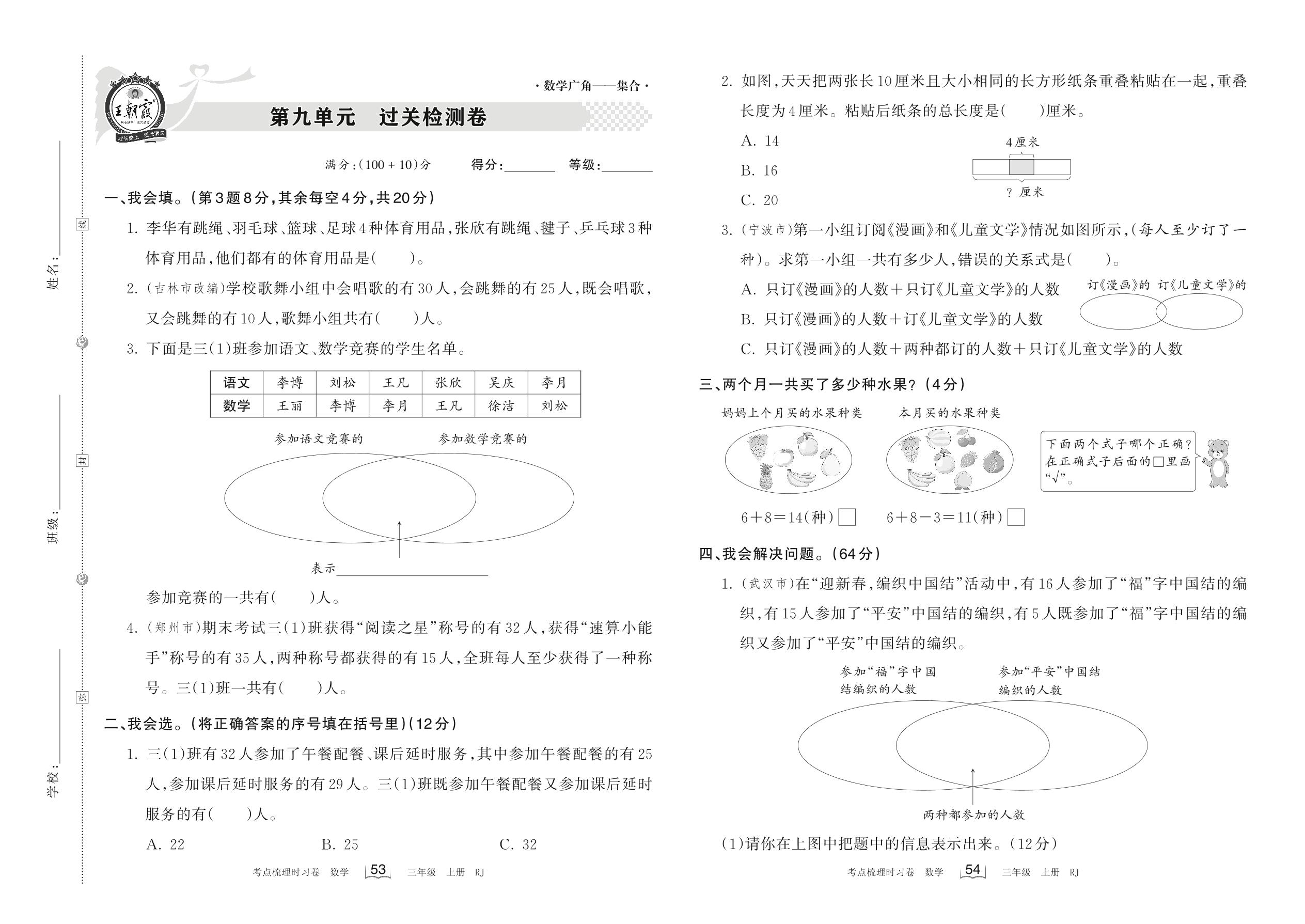 2022上册三年级数学人教版 第九单元 过关检测卷