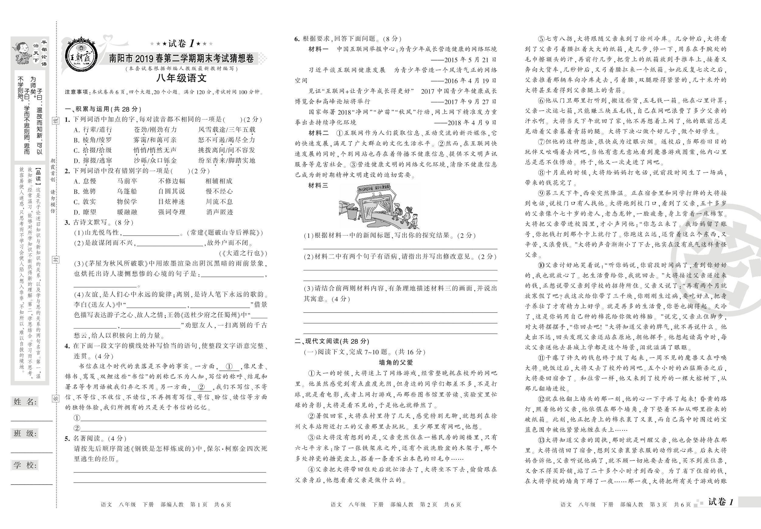 2018-2019学年第二学期南阳市猜想卷八年级语文试卷(人教版)【1】
