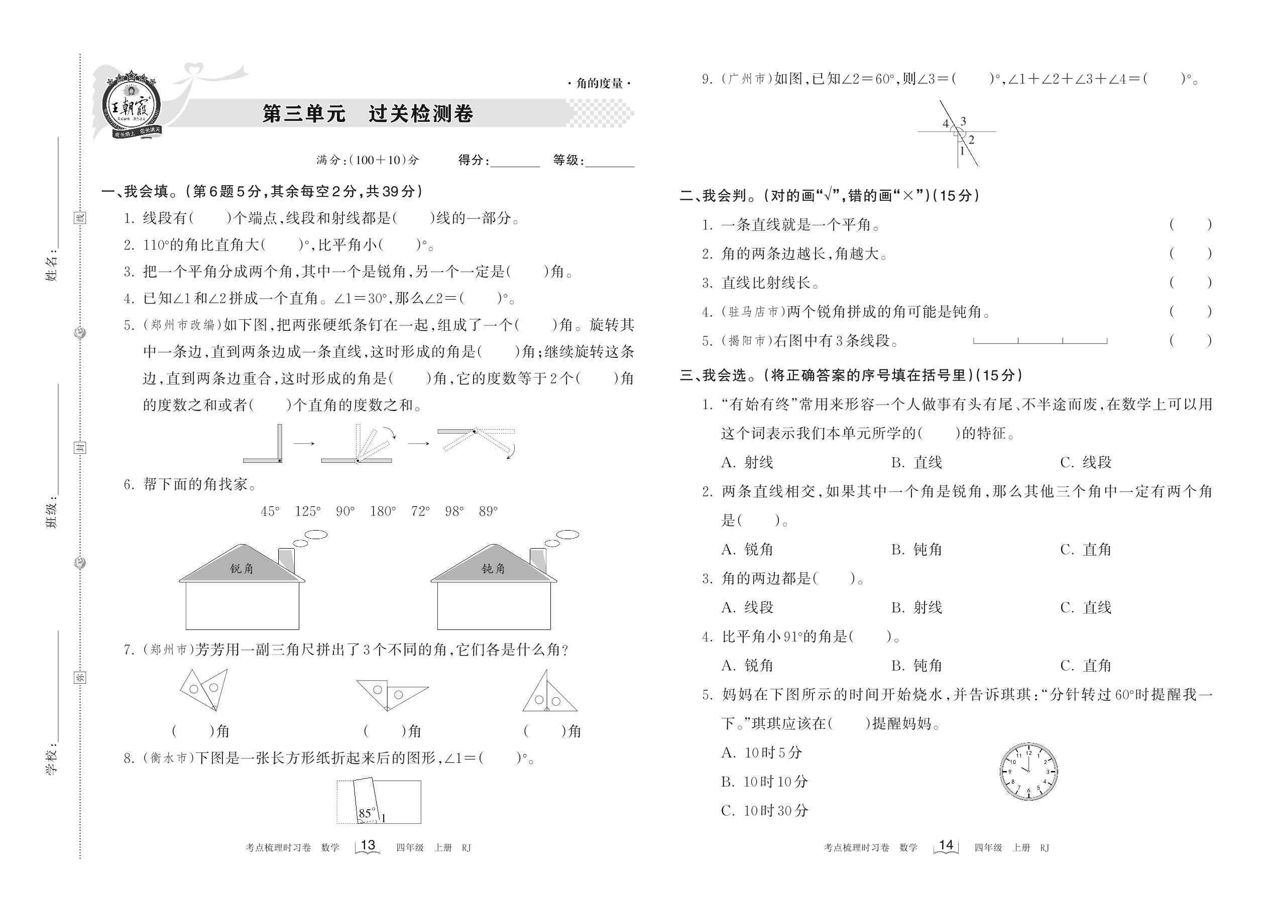 2022上册四年级数学人教版 第三单元 过关检测卷