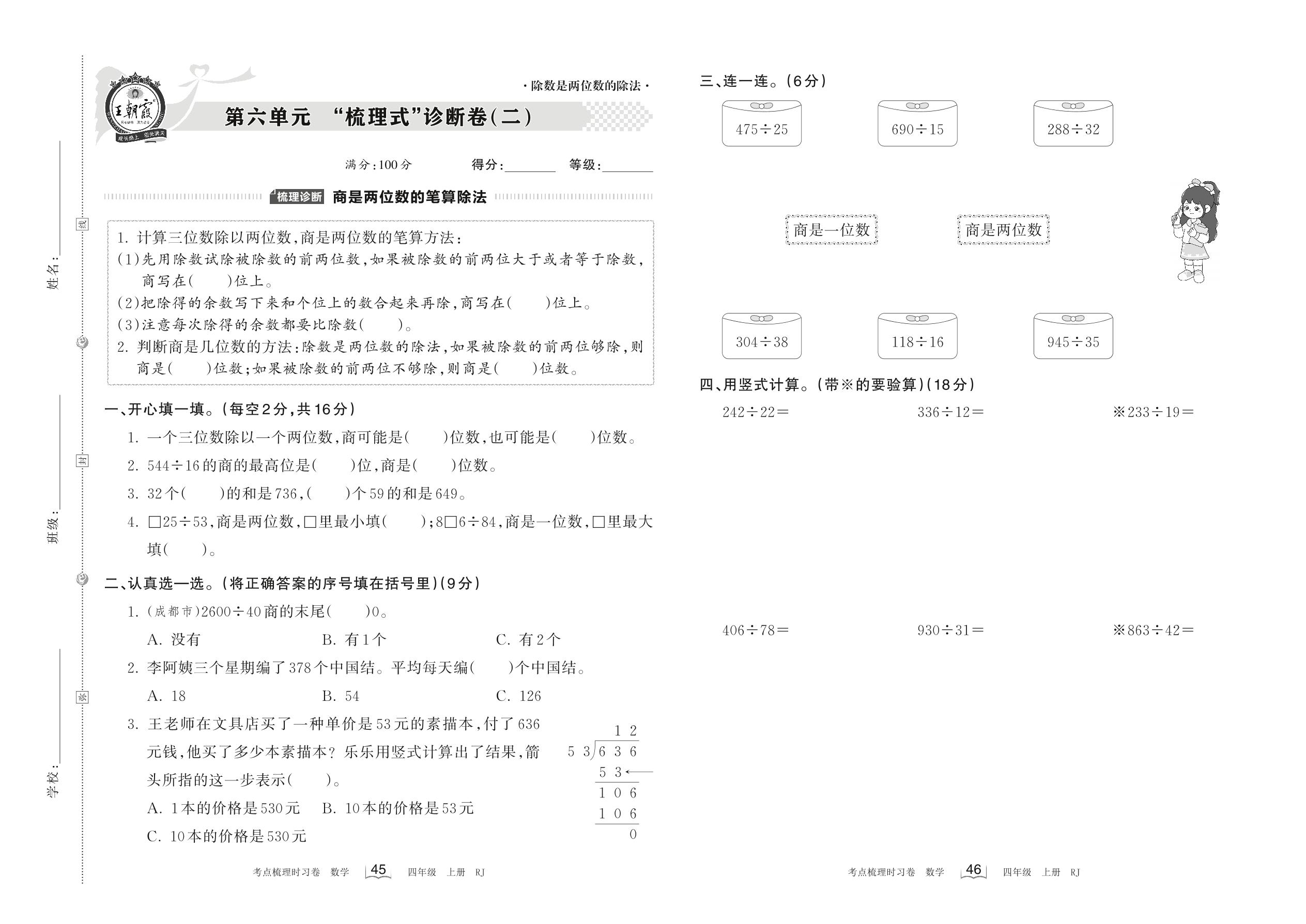 2022上册四年级数学人教版 第六单元 “梳理式”诊断卷(二)