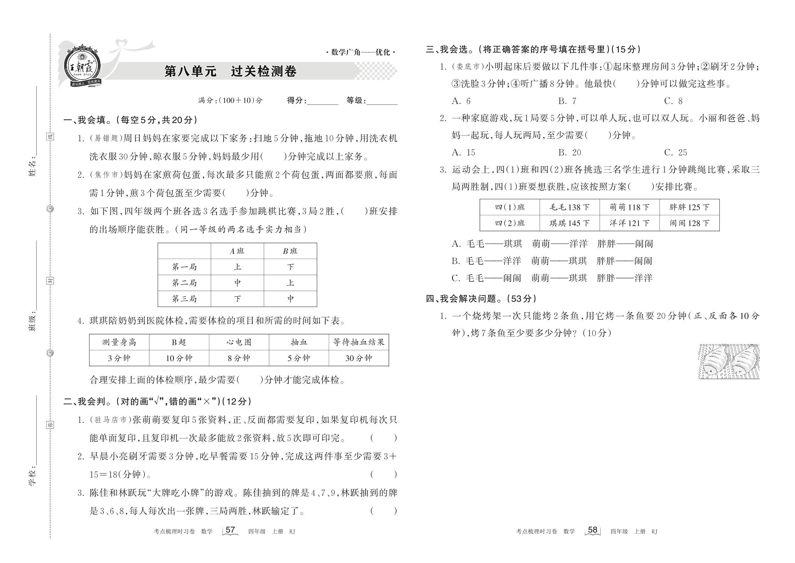 2022上册四年级数学人教版 第八单元 过关检测卷