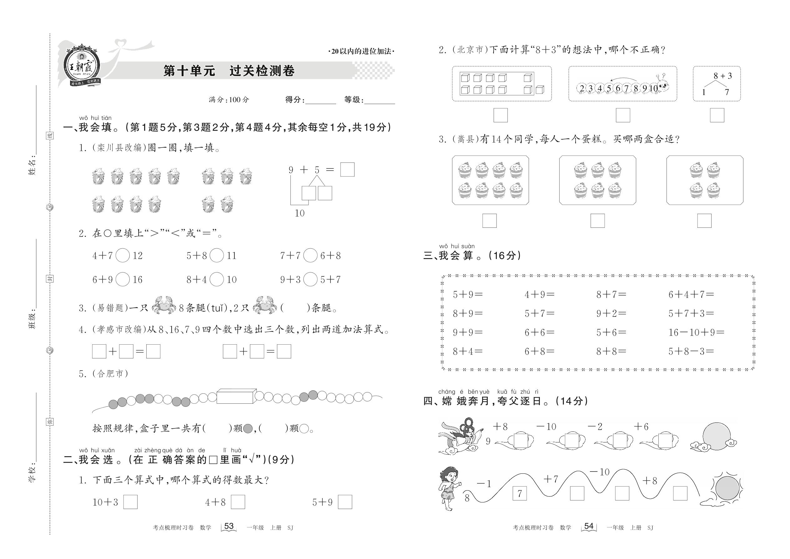 2022上册一年级数学苏教版 第十单元 过关检测卷